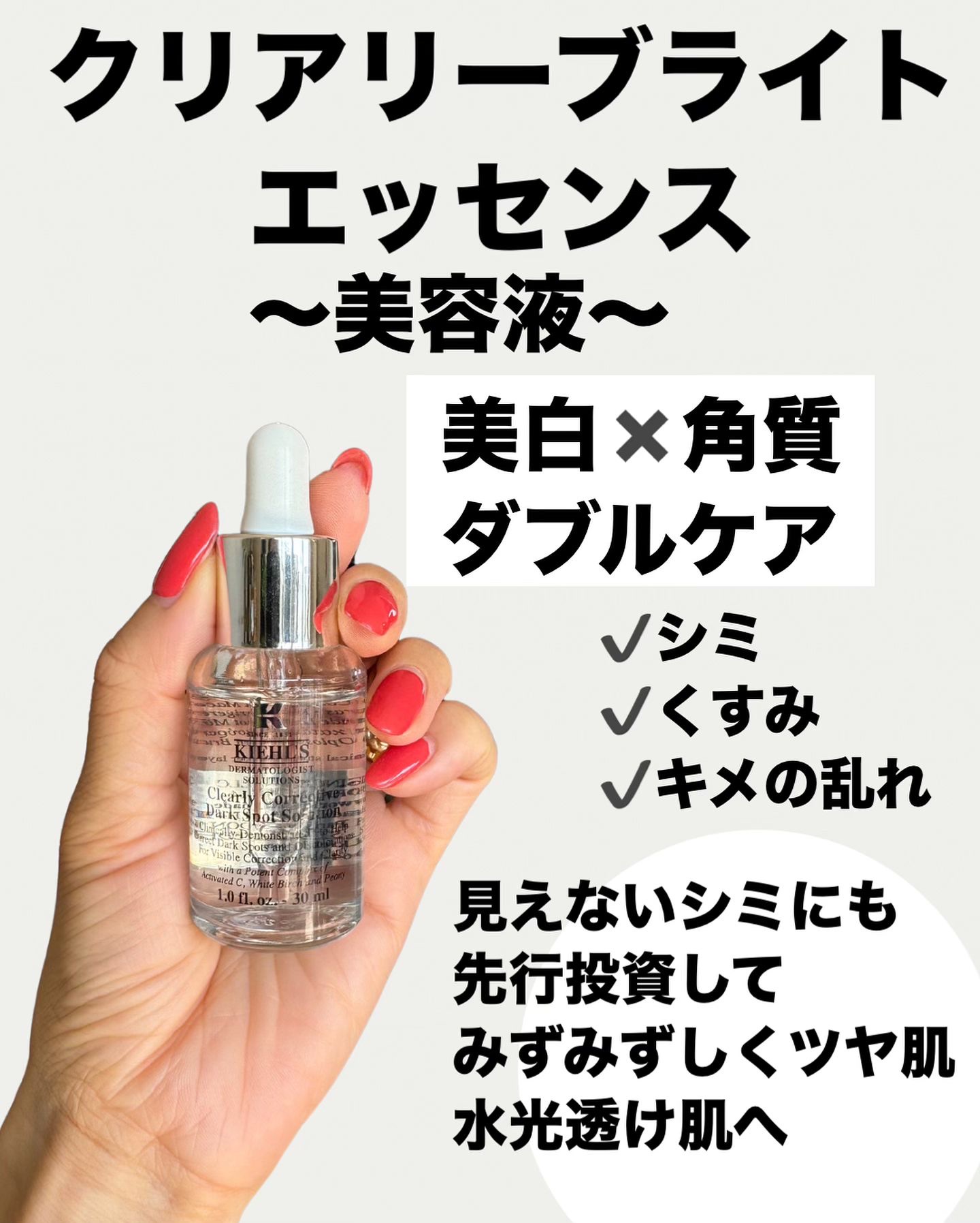 Kiehl'sオタクの自覚はないけど、スキンケアの大半がKiehl'sな私ですこんばんは☺️👏本日発売のこちら達。一つは現品、一つは大きいサイズ試供品をいただいて参りましたよー☺️❤️あ、ちなみに私のスキンケアの常連Kiehl'sは、ビタミンCの美容液、ミルクピールトナー、紫のクリーム、仕上げのブラー。でここに時々、ちょこちょことセラムとかが混ざります。結構な割合でキールズです。ただみなさんお気づきだと思いますが、私は今まで化粧水をキールズで安定させていません。今までKiehl'sの化粧水は美白系のものと、アイリスを使ったことがあるのですが、特にアイリスのテクスチャーが苦手で、さらさら系のイプサをベースにしています。ただ今日発売されたキールズブリューフェイシャルエッセンスFAは、さらさら系なんです!!!🏃♂️🏃♂️オイルと水の二層なので振る必要はありますが、さらさら系なのでありがたや😌❤️コットンじゃなくて手で使うところもコスパ良しですね😆値段的には200mlで11000円くらい確かしたはずなので、結構良い値段してますが。手でつけるって考えるとコスパ的には普通かな?と。いつもイプサのタイムアクア200miを1ヶ月で終わってしまうのを考えると、手でつけたら倍は持つ気がする。キールズDSRTNリニューイングセラムは、ビタミンCを使ってるのなら、夜キールズDSRTNリニューイングセラムに、朝にビタミンCという使い分けをお勧めされました🥰キールズDSRTNリニューイングセラムはまだもう少し寒くなったら使うつもりなのですが、今からめちゃくちゃ楽しみです🥰❤️❤️