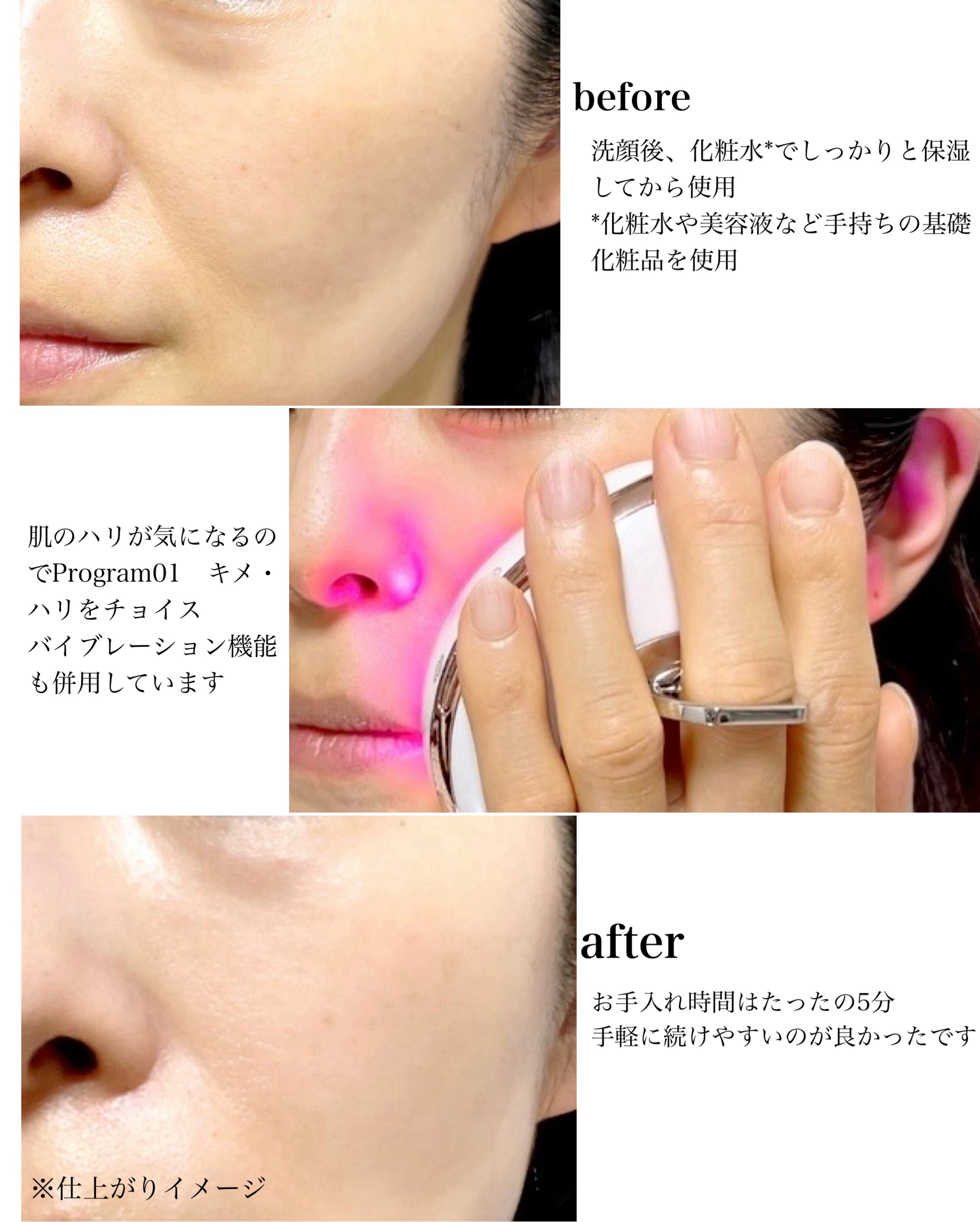 エクスイディアルエクスイディアルスフェラ 30,800円(税込)《LEDプログラムと+α機能の悩み別集中ケアで、自信の持てる肌へ導くLED美顔器》LED美顔器のパイオニアエクスイディアルが作った高機能ハンディーモデル丸いフォルムやカラーなど見た目がとにかくかわいい美顔器ケーブル、本体を収納できる専用ケースも、かわいいだけでなく使い勝手も良く、持ち運びにも便利なコンパクトサイズで、自宅だけでなく使えるのもかなり嬉しいポイントコロンと丸いフォルムで、ホールドリングがあるおかげで安定感があり、手にしっくりとおさまり持ちやすく、うっかり落としてしまうと言ったことがなく使えますこれ1つで、キメ・ハリ、思春期肌、肌荒れ・乾燥肌、輝き肌、イオン導出、イオン導入と6つのケアができ、ボタンを押すだけでプログラムが選べ、操作も簡単な点も美顔器初心者の私には良かったです年齢を重ね、肌のハリが気になる私には、キメ・ハリプログラムがぴったりキメ・ハリプログラムはバイブレーション機能と併用できるとの事で、併用して使っていました強弱と波のあるバイブレーションが心地よくお気に入り刺激のあるお手入れが苦手な私だけど、こちらは肌にあてるだけでよく、1つのプログラムがたったの5分とお手軽なのでお手入れに取り入れやすいですLED美顔器は初めて使ったけれど、これ1つで6つのケアができる上にボディケアにも使え、充電式なのでコードレスで使えて持ち運びにも便利な所+何よりかわいい所が気に入りました✔全方位振動技術を新たに採用。円運動による深く大きな振動によって、効果的に肌を刺激することができ、且つ、パワフルなのに静音性の高いバイブレーション機能を実現✔なりたい肌にあわせて選べる6種のプログラム✔高輝度高出力なLED(4波長65個)を搭載。エステサロンでしか受けることの出来なかった本格お手入れを自宅で#PR#エクスイディアル#エクスイディアルスフェラ#Exideal#LED美顔器#美顔器#スキンケア#Myあか抜け記録#夏のお供紹介します#わたしの仕込み美容#差がつくひと手間グッズ