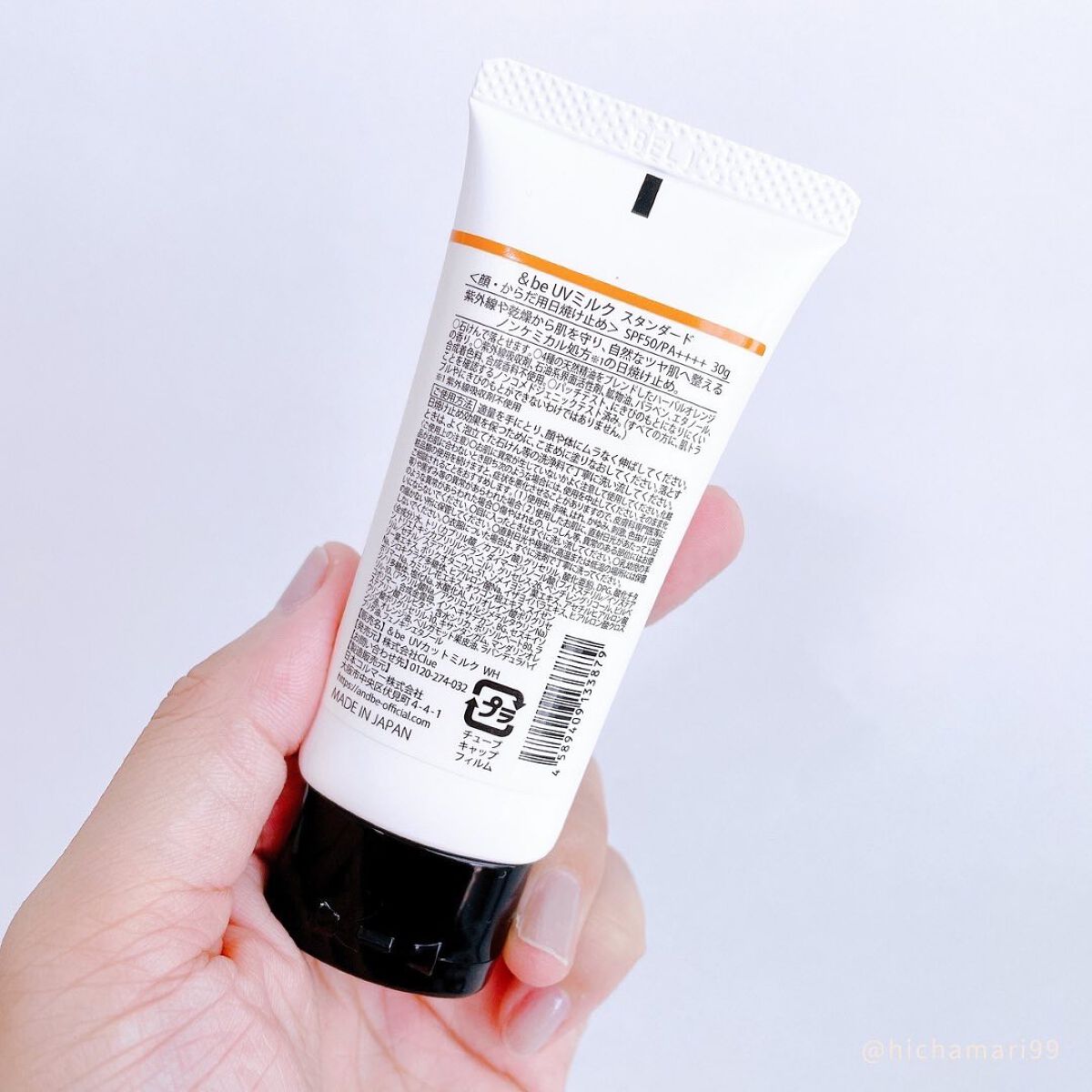 [皆使ったことあると思う🤔人気コスメブランド&beの日焼け止め]________________________&be(アンドビー)&beUVミルクスタンダード30mL¥1,980(税込)[公式]ノンケミカル処方&SPF50PA++++の、肌に優しく高い紫外線カット効果を実現した、みずみずしくなめらかなつけ心地のUVミルクです。微細パールが肌を自然にトーンアップし、透明感のある美肌を演出します。紫外線だけでなく、環境ストレスからも肌を守ります。________________________○この日焼け止めの👍な所・・・✔️肌にも環境にも優しいノンケミカル処方で SPF50PA++++の国内最大値✔️ツヤがお肌の透明感を上げてくれて自然に綺麗に見せてくれる✨✔️肌に優しいだけでなく肌を守る効果のある成分を配合👍✔️石鹸で簡単オフ❗️○この日焼け止めの👎な所・・・✔️付けすぎるとわかりやすく白浮きしてしまう💦✔️よーく伸ばさないとムラになる○👎な所の改善方法・・・①一気に付けるんじゃなくてちょっとずつ様子を見ながら付けてみたらいいかも②手よりスポンジで伸ばした方が個人的には良いと思う👍________________________すごく有名な日焼け止めをレビューしました。ぜひご参考に✨#&be#&be_下地#UVミルク#スタンダード30g#日焼け止め#トーンアップ#ノーファンデ宣言