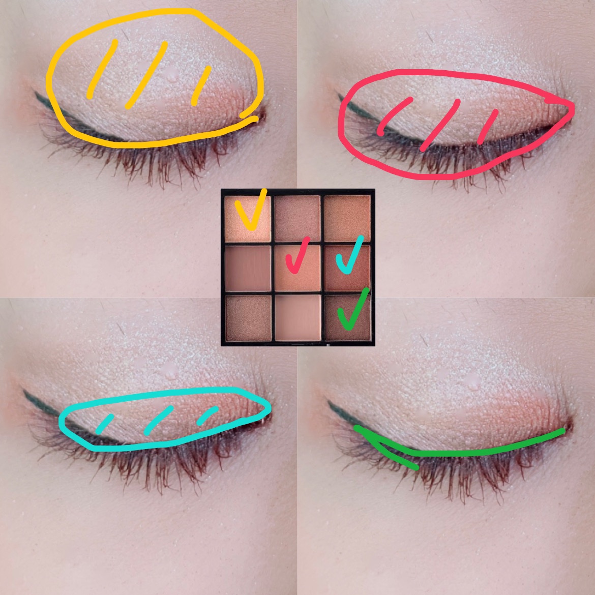 ✨一重・二重別✨ URGRAMを使った アイメイク解説!こんにちは😃今日はURGRAM04のアイメイク解説投稿です!まず、二重さんからベースシャドウとして⑧をアイホールと下瞼全体に塗ります ↓...