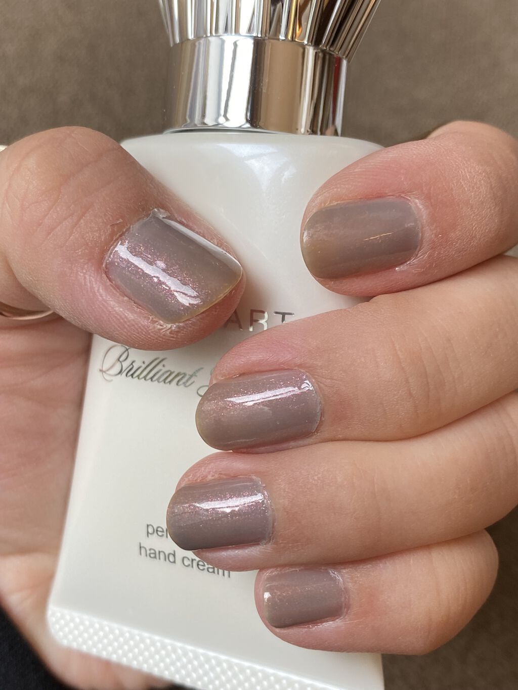 ラベンダーがかったシアーなグレーをベースに たっぷりの偏光ピンクパール✨ 大人っぽくてオフィスにも使える色味♪ 欠けにくくて耐久性もあると思います ハケは小さめで先端エッジも塗りやすいです✨