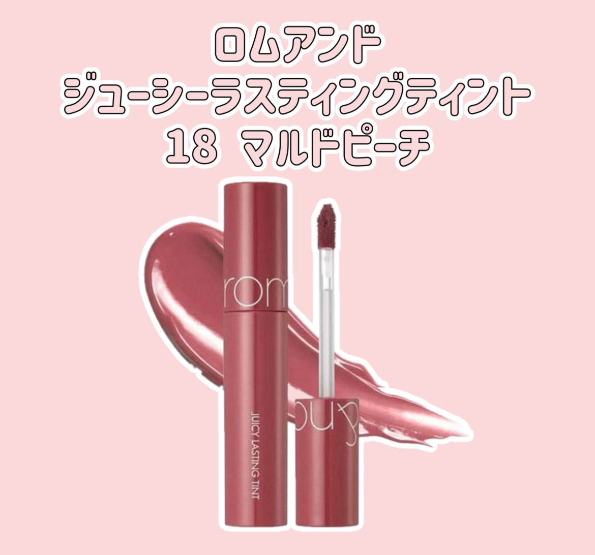 rom&ndジューシーラスティングティント18マルドピーチ¥1,320まろやかピーチカラーの粘膜リップです🍑絶妙なまろやかさが本当に可愛い…😭色作りが天才👏さすがロムアンド様👏と思ったティントリップです!#韓国コスメ#ティントリップ