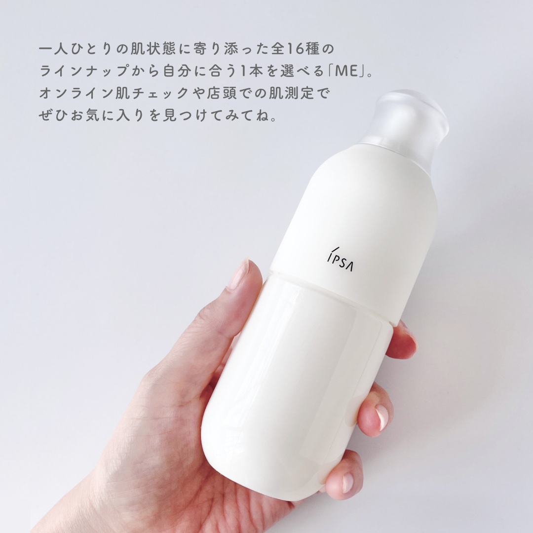 肌本来の美しさを引き出す化粧液✨️ 16種類から自分の肌に合うアイテムが見つけられるよ☺️♪ しっとりとしたテクスチャーでお肌にグングン浸透してくれる!滑らかに伸びて使い心地も◎ イプサ公式オンラインの肌診断で肌に合うMEがわかるよ!四季ごとで油分や水分量など変わってくるから気軽にオンラインで診断できるの嬉しいね!