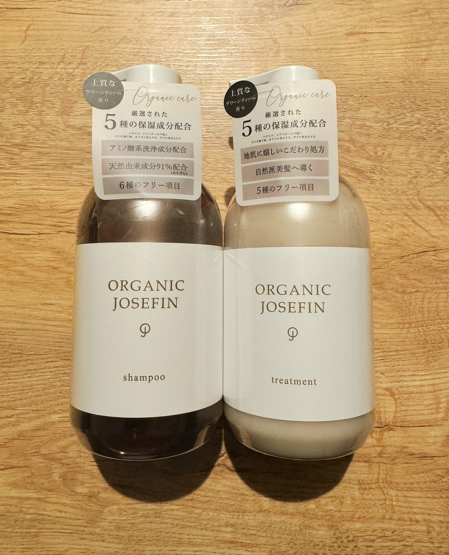 オーガニックのシャンプー&トリートメント 正直ここまでサラサラになるとは思ってませんでした。 YouTuberのお部屋紹介やモデルさんのルーティンで見かけることが多かった このORGANIC JOSEFINの シャンプー、トリートメント🛁*。 香りが大好きなグリーンティーと聞いて これは一度試してみるしかないと、香りだけで買ったんですが 本当にサラサラになりました💇♀️✨✨✨ オーガニックのシャンプー&トリートメントって髪や地肌にも優しいだけでなく、お風呂場だとどうしても耳の裏や首、背中、腰に洗い流す時にシャンプーがつくときもある。 ノンシリコンによくある“きしみ”ですがこれも全くと言っていいほどなし✨ むしろトリートメント流した後は毛先が重く感じます。 こんなにいい所だらけなのに お値段もバカ高い訳じゃないし、むしろAmazonで2個セットで50%オフやってるくらい。 香りは私の場合ですが 髪乾かしてたら別室にいた旦那が「こっちまでいい匂いだよ〜」と言ってたので 十分残ってる感じがしました🌿🌿🌿 これは間違いなくリピートします。