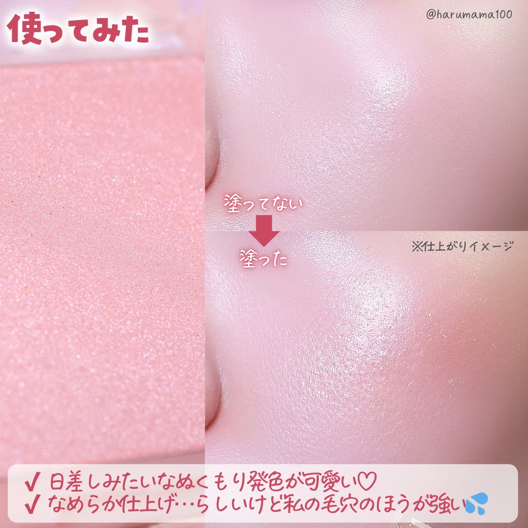 そこ見えするぐらい使ったハイライト✨2色カラー展開があるのですが、ブルーベースさん向けとイエローベースさん向けに分かれていて、こちらの色はどちらかと言うとイエローベースさん向けのお色だと思います🙌肌なじみが良くとても可愛いです✨透明感を出したいなら、もう一つのお色のほうがいいかもしれません❗️