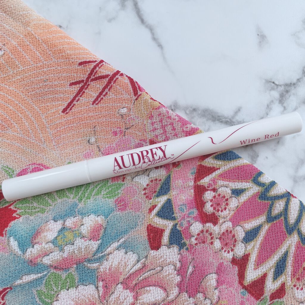 オードリーコレクションスターアイライナーワインレッド一度で決まる、女優ライン。太さも濃さも自由自在、愛される女優のようなプロの仕上がりのアイライナー。しなやかでコシのある0.1mm極細ブラシを採用。密着処方でにじみにくく、目元をケアする保湿成分も3種類配合。こだわりの発色が長持ちするロングラスティング処方。おちかたも綺麗で、描きやすく良かった。