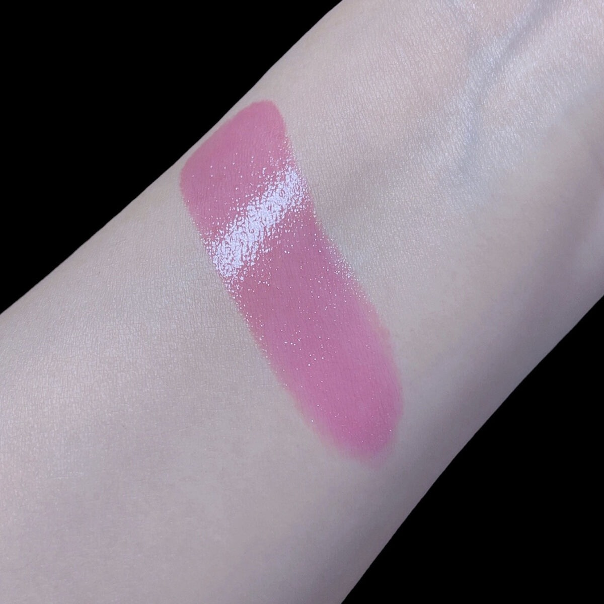 実際に塗ってみるとラメが目立ちすぎることもなく、透け感のあるピンクにラメがキラキラして可愛いカラーでした🥰 さっと塗っても付きすぎたり、ムラになったりせず綺麗に仕上がり、ツヤ感も綺麗で使いやすいリップです💄✨ 発色も透け感のある発色で重ね塗りで色味を調整できるので自分好みの色味にできます😌