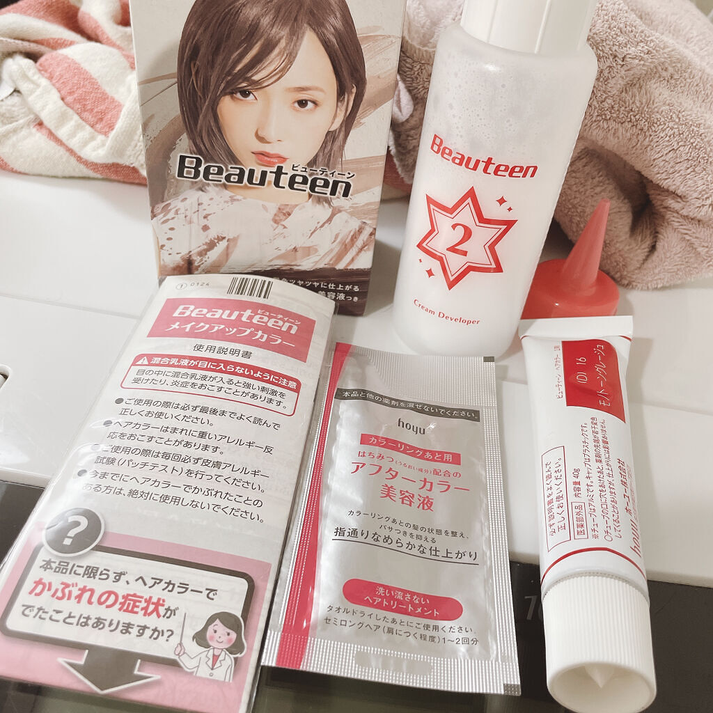 【ビューティーンメイクアップカラー】内容量:40g+88mL/美容液5mL📷✨ビフォアフあります✐☡⋆*✰*。モノトーングレージュインナーカラーの色落ちを待ってたのですが、全然抜ける気配がなく、、、年明けにセルレに行ったらなんと!こちらのシリ...