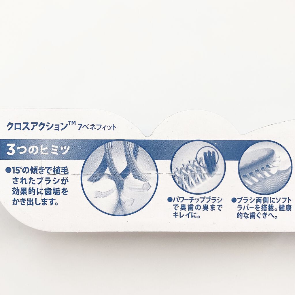🤎歯医者さんにほめられるケア🤎ーーーーーーーーーーーーーーーーオーラルBオーラルBクロスアクション7ベネフィットーーーーーーーーーーーーーーーーLIPSは歯ブラシのレビューもできるんですね😃❣️こちら、毎月購入している歯ブラシです。買い替えのタイミングで写真をたくさん撮ってみました😊(歯ブラシの写真なんて撮ったの初めてです!)まるでスニーカーか何かのようなゴツい見た目。植毛の角度が、他にはなかなか見られない絶妙さで、よく磨けている実感が得られやすいです。毎日とてもすっきり。こちらを使うようになって、歯医者さんで「歯ぐきのケアがとても上手にできている」と褒められました😌ちなみに、歯医者さんで褒められるというのもはじめての経験でした😁もっとすごい歯ブラシが登場しない限りはずっと使い続けたいなぁと思っています😊