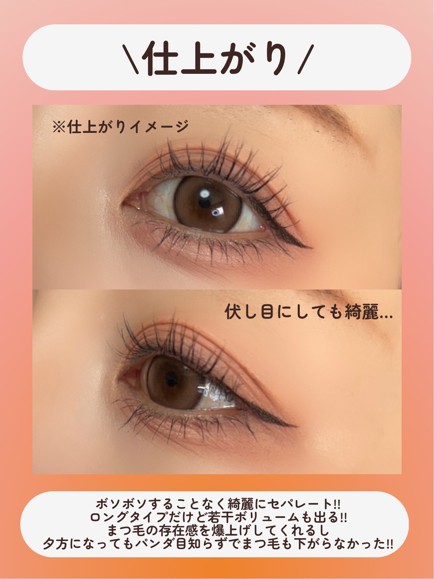 1番驚いたのは、まつ毛に均一に色が塗ってくれるところ!! 仕上がりは結構しっかり盛れてばさっとまつ毛が作れます!! まつ毛はとにかく盛りたい派の私にはめちゃくちゃ良かった〜!!!