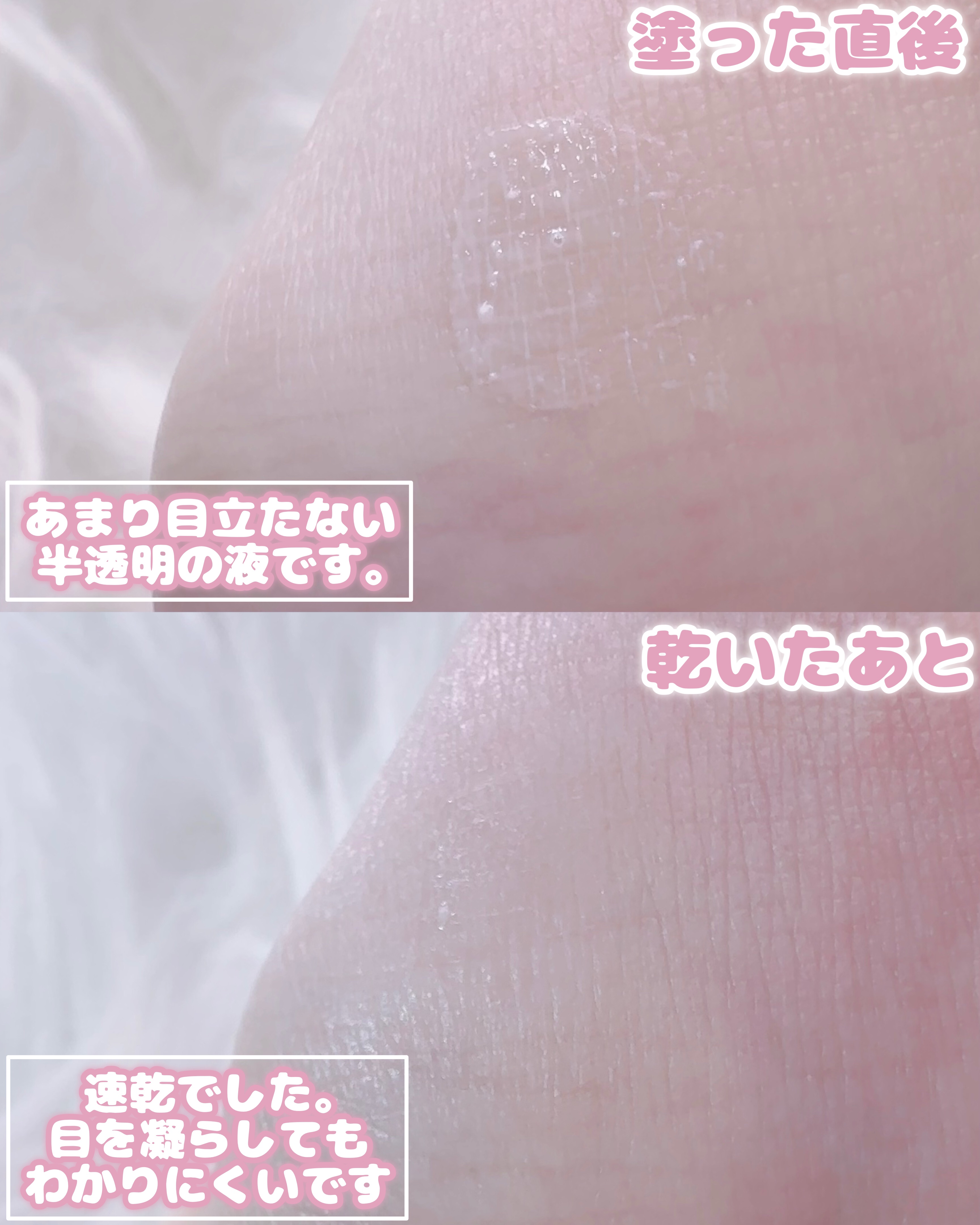 塗りました感満載で自然ではないかも… 筆は細くて塗りやすいし乾くのがすごく早いので使いこなせば大活躍しそうなのにほんとに残念 薄い膜を作って二重を作るのでアイプチみたいに皮膚をくっつけない分瞼にも優しいし皮膚が伸びることもないので本当にいい商品だと思う