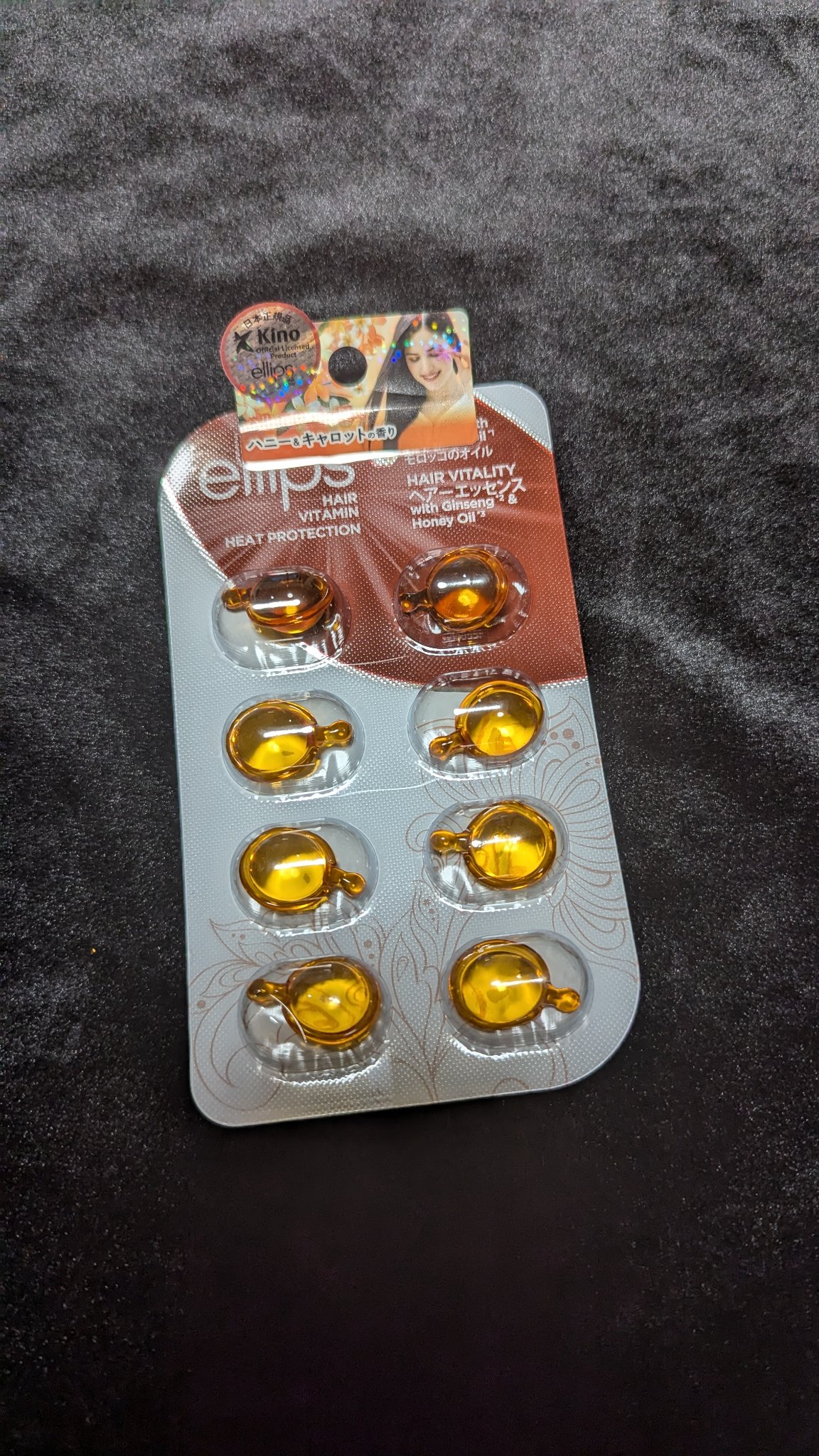 ellipsヘアーエッセンスハニー&キャロットの香りオイルが小さなカプセルに小分けになってて見たら印象に残る形のこのエリップスのヘアオイル、お店で見かけたりして気になっていましたが幸運にもLIPSプレゼント企画で頂いて使ってみました。小分けに...