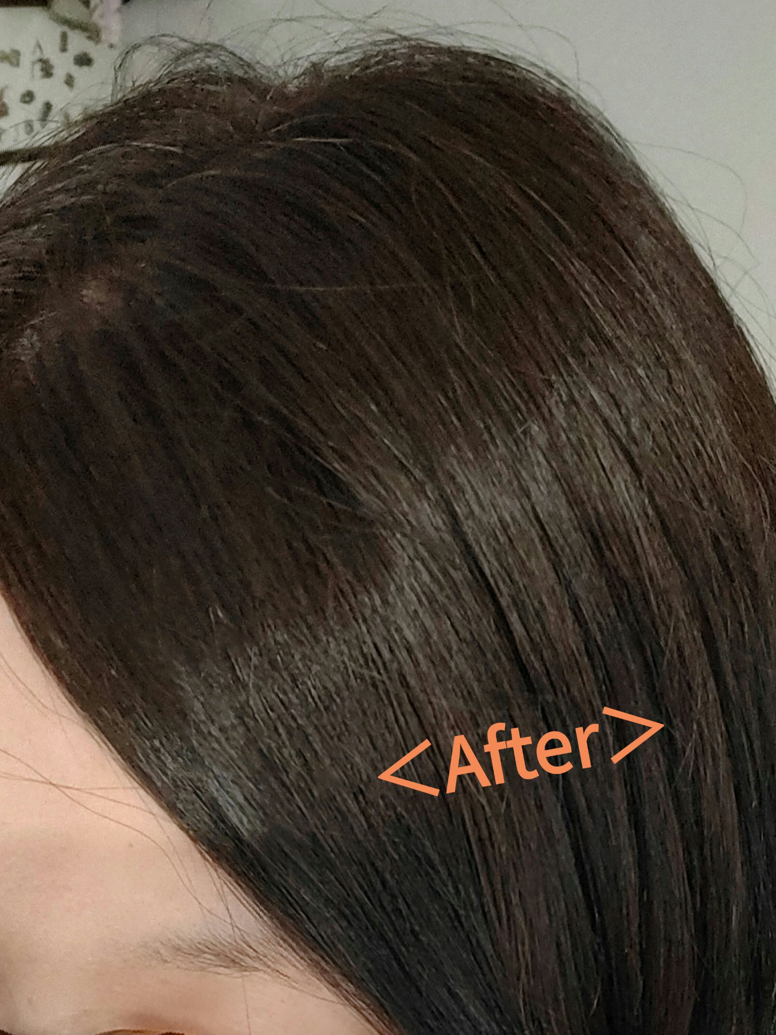 プロフェッショナル処方の濃厚オイルカラーでツヤのある仕上がりに✨ 高品質の4種類のオイルが高配合 白髪も黒髪もしっかり染め上げながら、手触りでも実感できる!! クリアアッシュで染めました☺️ 白髪もしっかりと染まって黒髪も元々染めていた髪の毛も同じカラーに揃いました🥰 写真は、洗い流してドライヤーをしたあとですが、パサつきも滑らかになってくれてます✨