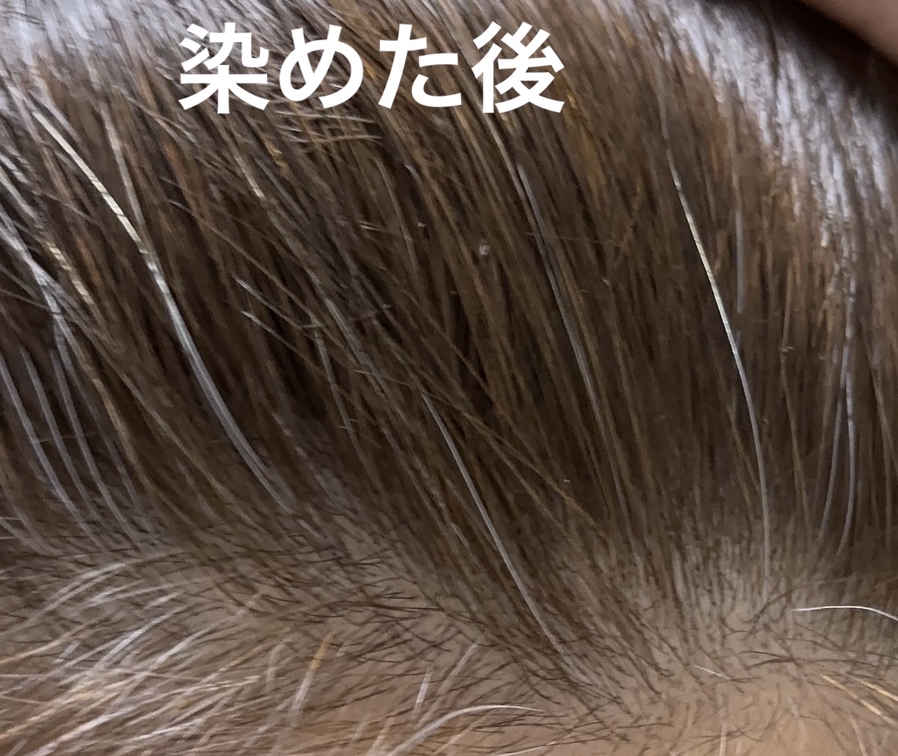 サイオスカラージェニックミルキーヘアカラーパーリーアッシュで染めました。やっぱり塗りやすいです。前はショートで量に余裕がありましたが、髪が伸びたこともあり今回はぴったりでした。塗り残し無いかと思います。髪の長さはあご下1cmぐらいです。もう少しグレーっぽいアッシュになるかと期待していたのですが、あんまり変わらずでした。思ったより明るい感じなので季節紫外線が強い今、褪色が心配です。白髪は概ね目立たなくなりましたが、完全に染まった感じでは無く、2本くらい気になる白髪がありました。
