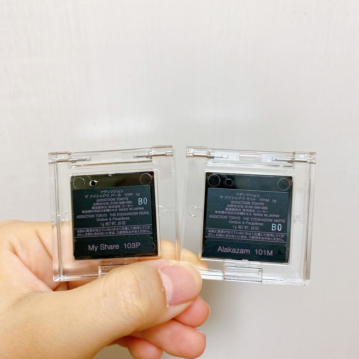\ADDICTIONザアイシャドウ/ザアイシャドウマット101M Alakazamザアイシャドウパール103P MyShare大好きなアディクションの単色アイシャドウデパコスで無難なカラーはもったいないかなとか思うタイプなんですが笑笑もちもい...