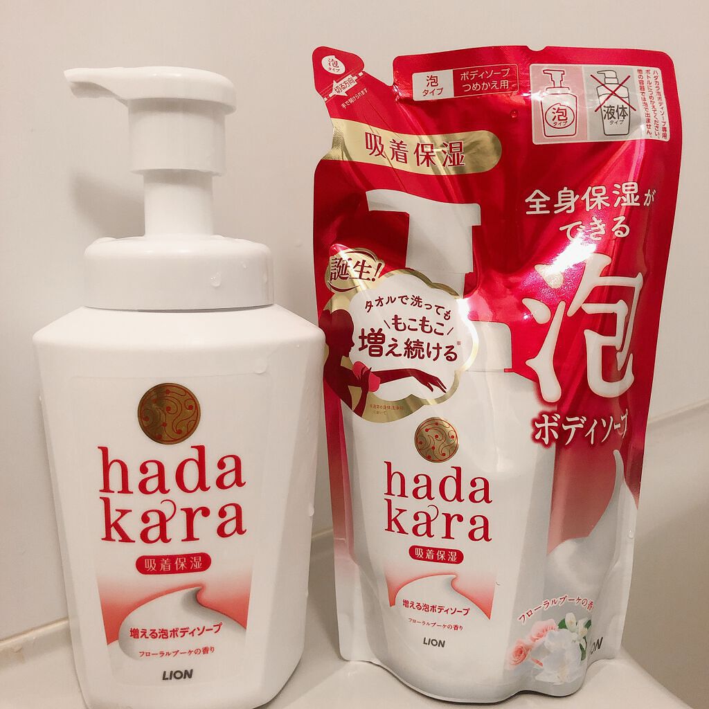 hadakaraボディソープ泡で出てくるタイプフローラルブーケの香り(本体550ml+つめかえ用440ml)ドラッグストアにて数量限定お買い得セットがあったので購入しました。【商品の特徴】・泡で出てくるボディソープ・フローラルブーケの香り・濃密泡がモコモコ増え続ける・たっぷり泡で背中まで全身保湿【使用感】・華やかなフローラル系の香り。同シリーズのクリーミーソープの香りと比べるとやや甘めに感じます。家族で使いやすい香りだと思います。・押すだけでフワッとした泡がすぐ出てくるのでとても便利だと感じました。・泡切れは良かったです。【どんな人におすすめ?】・泡で出てくるボディソープが好きな方・手で洗う方、タオルで洗いたい方・泡立てが面倒な方・全身をフワフワな泡で洗いたい方#ハダカラ#ボディソープ#ボディケア#スキンケア#今月の購入品