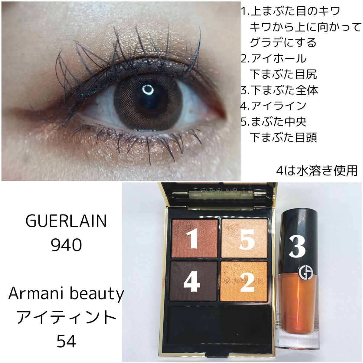 ロイヤルジャングルもきっと買わないだろうなぁと思ってましたが、せっかくプロのそれもGUERLAIN専属の方にメイクしてもらえるなら敢えて苦手意識の強いものを選んで使い方を教わろう! 自分でやるとどうかなぁと思ってましたが、下まぶたに自分の得意カラー持ってくると暗さ感じなくてすごくお気に入りに。 アルマーニのアイティントは、2/10にリニューアルしてこの色なくなっちゃったんですが、似た色はあります。 ハイライトもゴールド系にして統一感出たかな?と自分では思ってます。 限定、廃盤が多いですがアイシャドウはまだ発売から1年経ってない新作! イベントの時に、ゲランのメイクアップ製品はブルベ、イエベと分けたり○○向けとか一切関係なく作られてる、使いたいものに自分を寄せて使うのがゲランの製品というお話を聞けて、すごく良かったです。 私自身、パーソナルカラーでどうこう分けるの好きじゃなくて、使いたいものがあれば自分で似合うようになんとかする過程も含めて好きなので、そういうお話聞けてすごく良い時間でした。