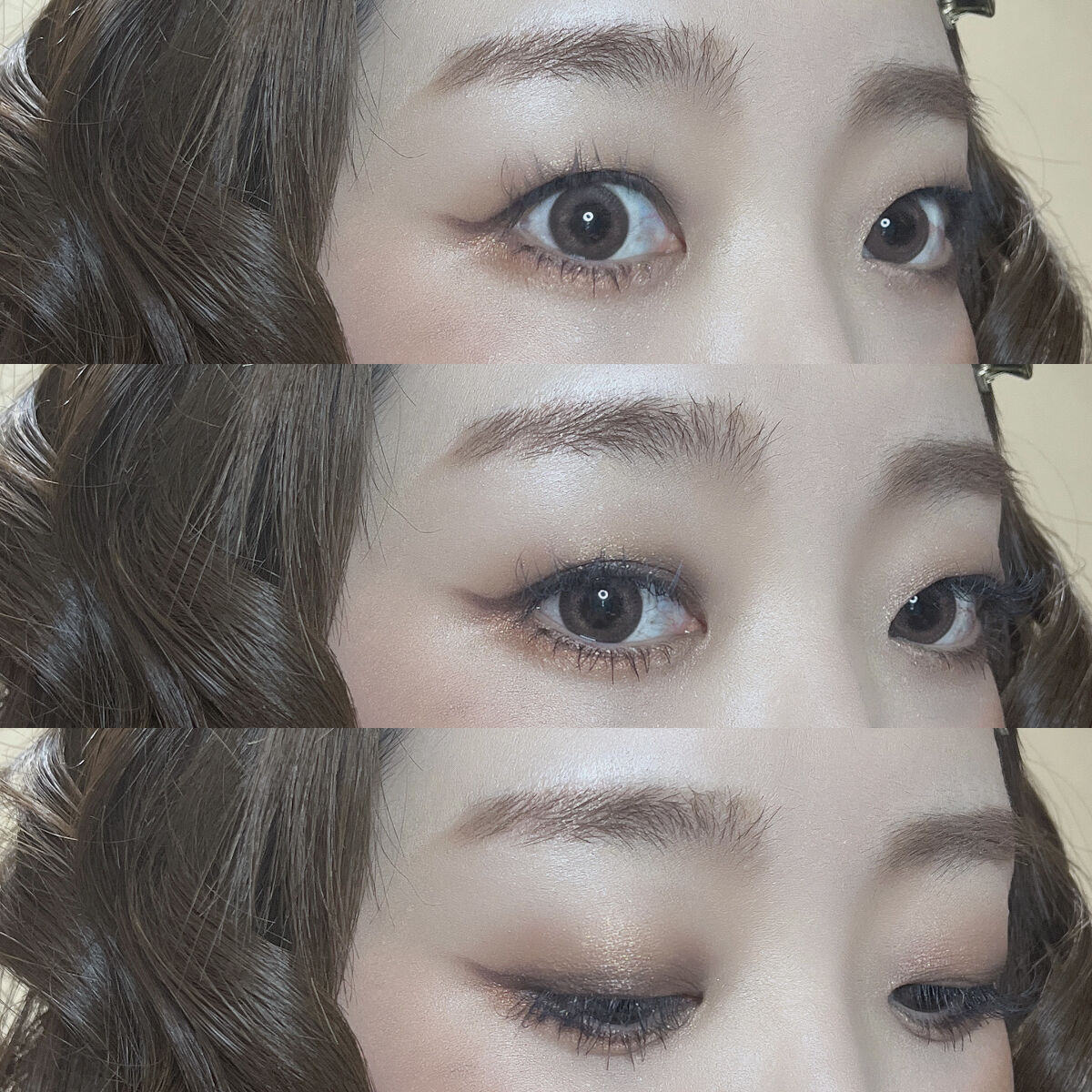 アイメイクは指塗りオンリーだけどこの組み合わせ、お気に入りでよくやります。 指でサッと伸ばすだけでグラデ綺麗にできるけど密着力、ヨレもないので本当に急いでる時に便利です。お直しいらず。 チークは久々にニュアンサー使わずに思いっきりゴールドのハイライト重ねてます。 リップはホリデーのお気に入り マスカラは上はブラウン、下がラメです。