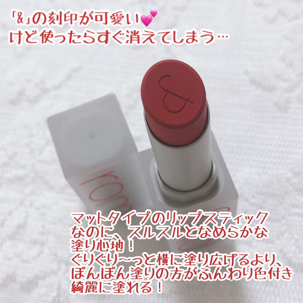 rom&ndのゼロマットリップスティックです!!軽いつけ心地で付けてる感がないのにとっても発色が良いです!🌟鮮やかな赤で顔色が一気に明るくなります!ロムアンドのティントタイプよりは落ちやすいと感じますが、普通のリップと比べると色持ちいいです!...