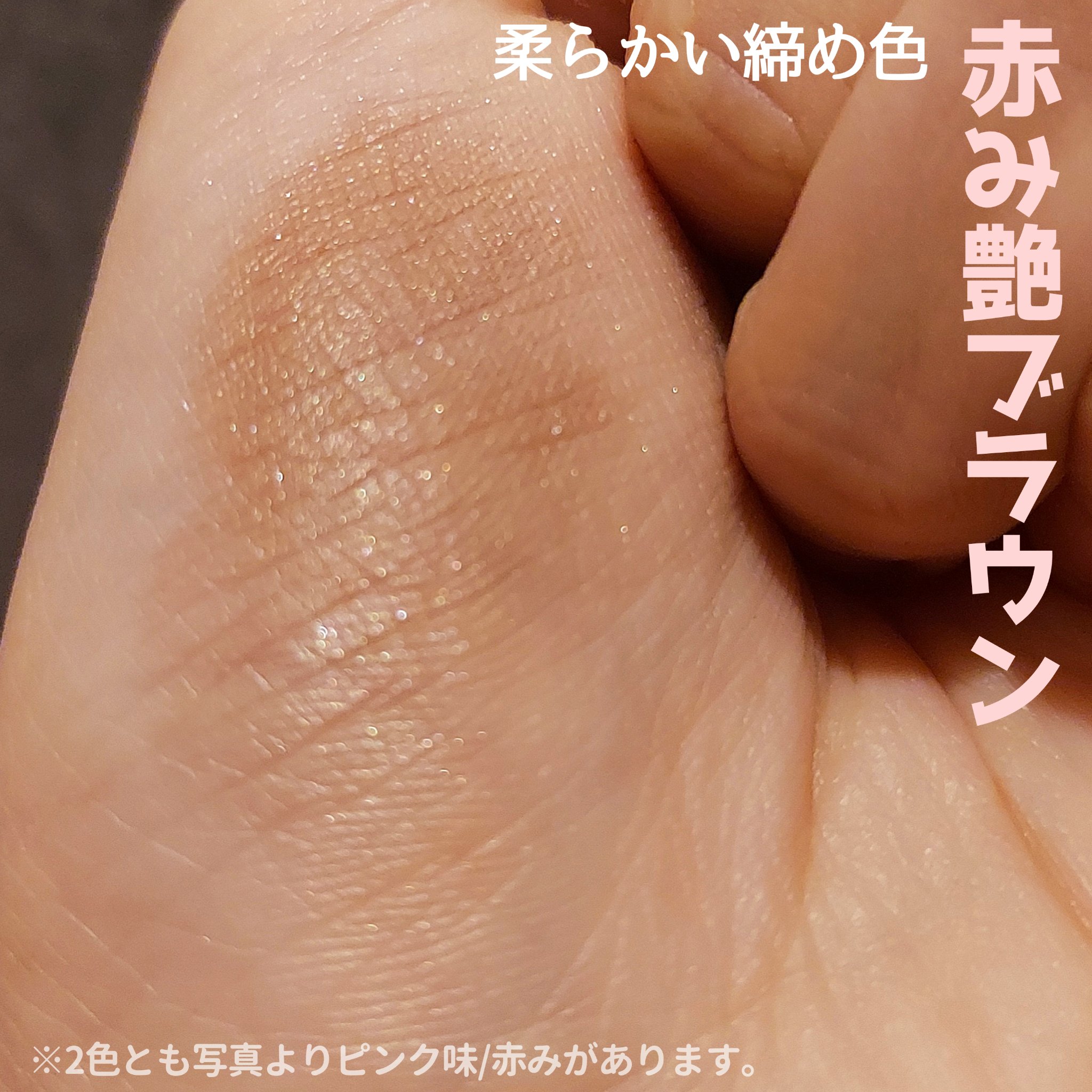 とっても繊細なラメやカラーの雰囲気でメチャクチャ可愛いんです(ˊ⸝⸝o̴̶̷ ̫ o̴̶̷⸝⸝ˋ)♡ 粉飛びしにくいしっとりアイシャドウパウダーに天然ミネラルのラメが上品且つ繊細&華やかで美しい✨ #01 ココナッツベージュ🥥優しいナチュラルカラー。肌馴染みが良く、ベージュカラーも肌から浮かないところが◎ #02 ピーチブラウン🍑発色が柔らかく上品なピーチカラーが可愛い! #05 シャンパンオレンジ🥂このシャンパンベージュ飛び抜け可愛いです! #06 ベリーパルフェ🍓苺クリームチーズみたいな色がメチャかわです♡ 左側のカラーが個人的にハイライトとしても使えるなって思ったので、万能なとこがまた好きなポイントです。 まぶたもパサパサしてこないし、カラーも素敵だし、石けんオフ出来るところも良い!
