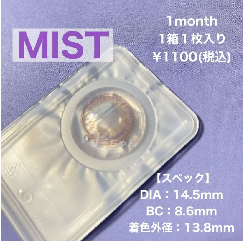 \盛れるカラコン🎶透明感抜群❤️💜/いつも♥️、📎、+👤ありがとうございます𓈒𓏸『ANDMEESeries』MIST1month1箱1枚入り/¥1100(税込)【スペック】DIA:14.5mmBC:8.6mm着色外径:13.8mm淡い発色のラ...