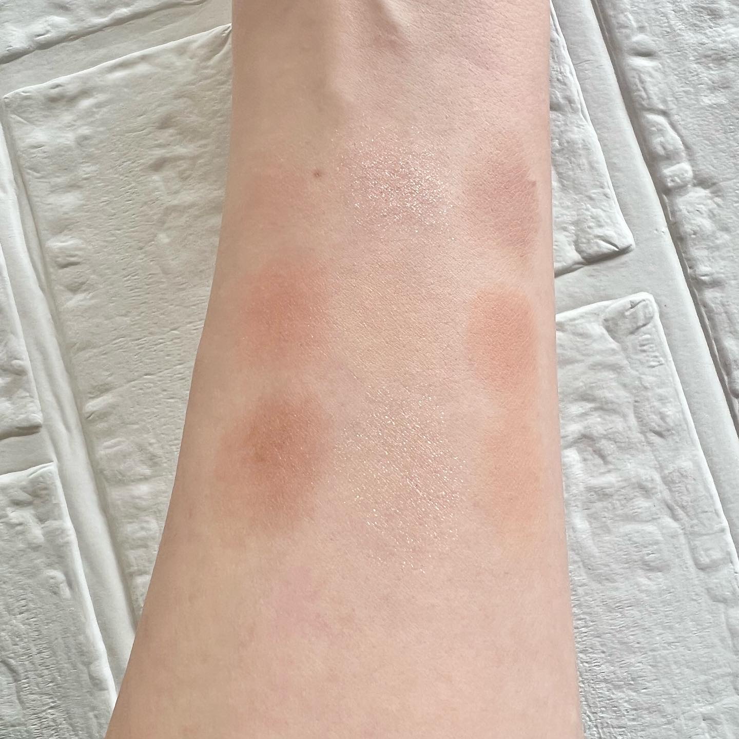 それぞれに質感が違うのですが、ちょっとモチモチとしたテクスチャーのものもあります。 ラメ感のつよいものは、モチモチとしていて、まぶたにしっかりとフィットしてくれます。 淡い色のパウダーは、かなり目元の奥行きを深めてくれる、美しい目元に!