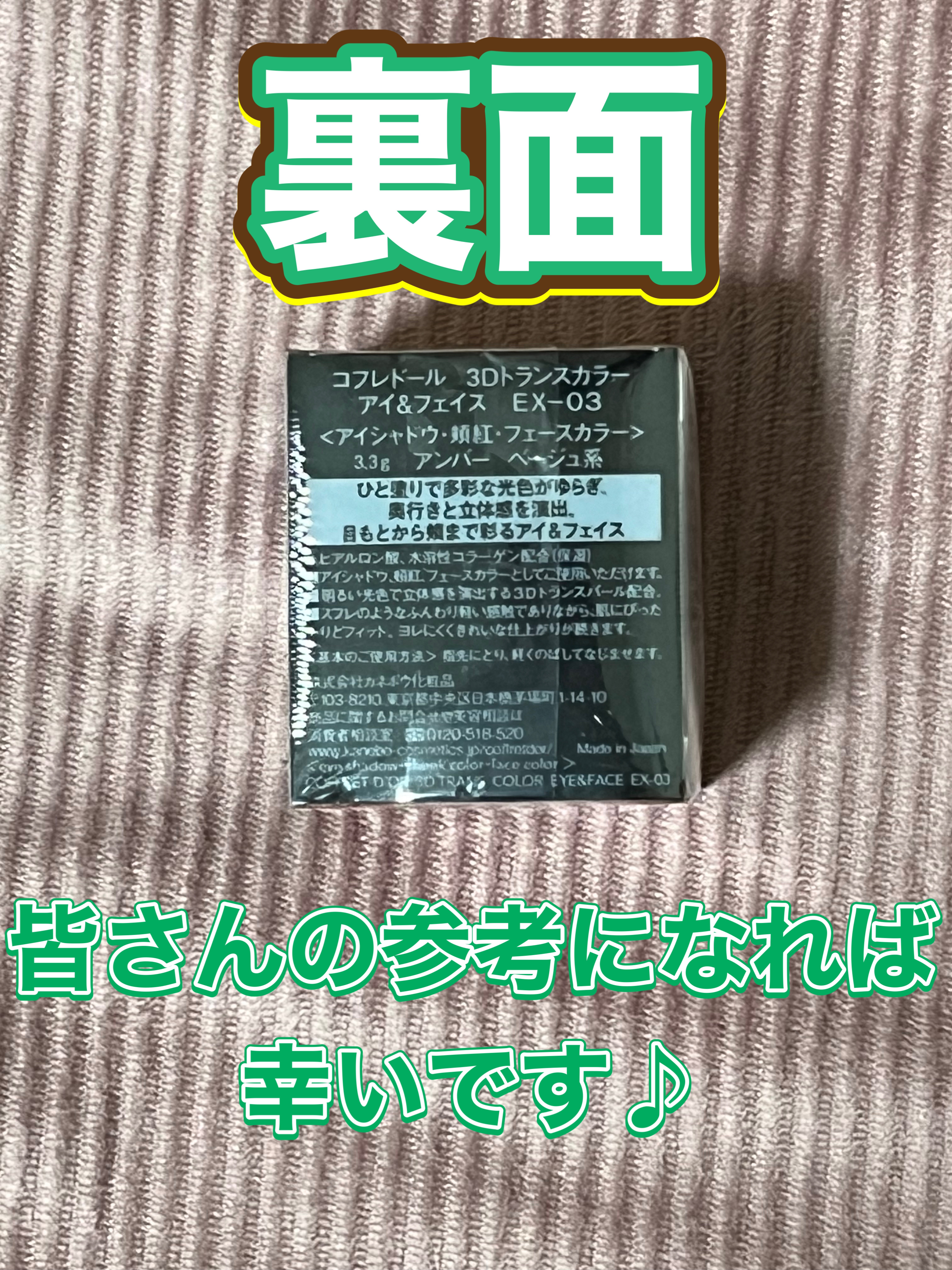 閲覧ありがとうございます♪毎回いいねなどしてくれる方ありがとうございます♪今回はセルレ購入品の一つのコフレドールの3Dトランスカラーアイ&フェイスを紹介したいと思います⭐️◯コフレドール◯◯3Dトランスカラーアイ&フェイス◯(アイシャドウ・頬紅・フェースカラー)◯EX-03◯◯アンバー◯(ベージュ系)◯限定◯・・・・・・・・・・・・・これ一つでアイシャドウとチークとフェイスカラーてして使えちゃいます😊💕時間がない時やちょっとしたお出かけや普段の化粧にも使えるので便利です🥰柔らかめのクリームアイシャドウなので、自分の好みの色の濃さなど調整できるし便利❣️発色、質、両方とも良きです😍さすがコフレドール様❤️セルレでお得に購入できて良かったです☺️💕色味の画像を室内光と自然光で載せましたが、分かりづらかったらすみません💦#毎日メイク#時短メイク#コフレドール#3Dトランスカラーアイ&フェイス#EX-03#アンバー#アイシャドウ#頬紅#フェースカラー#チーク#アイシャドウ_単色#アイシャドウ_ブルベ#アイシャドウ_イエベ春#チーク_ブルベ#チーク_イエベ#チーク_入れ方#今月のご機嫌コスメ#毎日メイクにプラスワン#涼やか初夏アイシャドウ#衣替えベースメイク#夏に備えるスキンケア#今日から始めるUV対策