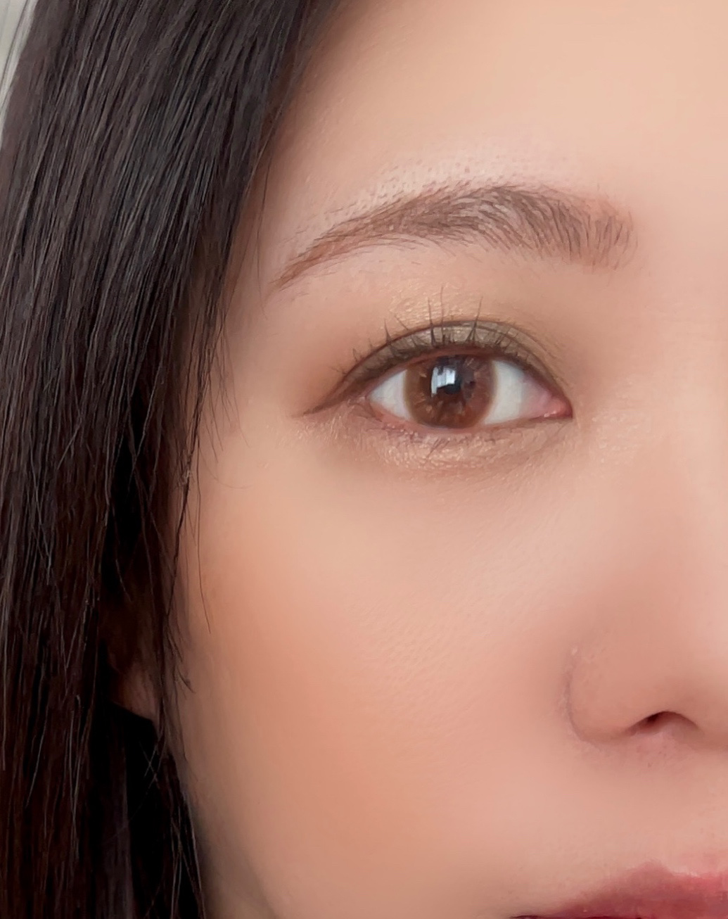 着色直径がそんなに大きくないのでデカ目効果はない分、自然に見えました!! オレンジが入ったブラウンで元々そういう目の人に見えます(笑) 縁もブラウン?なので溶け込みやすいです。 このシリーズはどれも自然なデザインなので全部試したくなります。