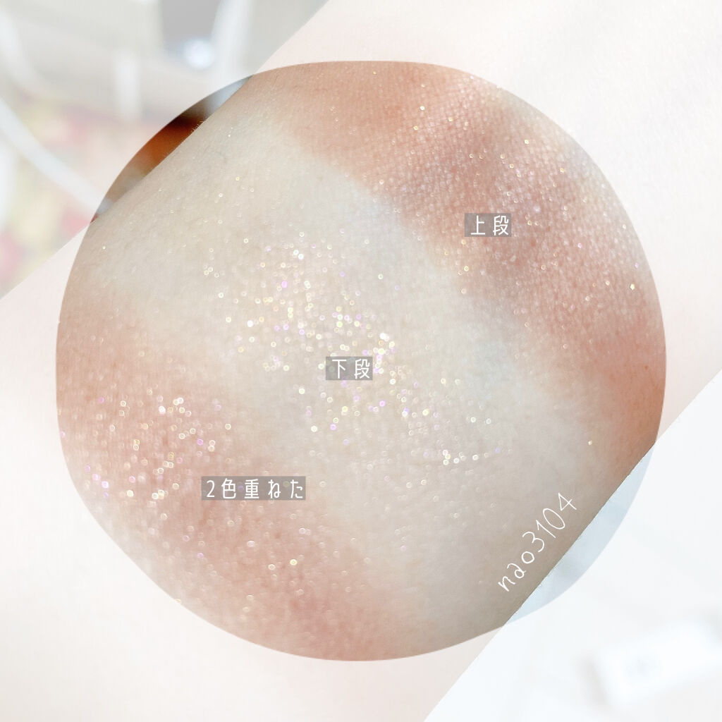 ピンクベージュのクリームシャドウと オレンジ多色ラメ🥹🤍 すごい肌に馴染むから TPO選ばずデイリーに使いやすいし、 どの年齢層に勧めても気に入ってもらえる! 適当に塗ってもそれなりにしてくれるから 朝弱い民の味方🥺🤍