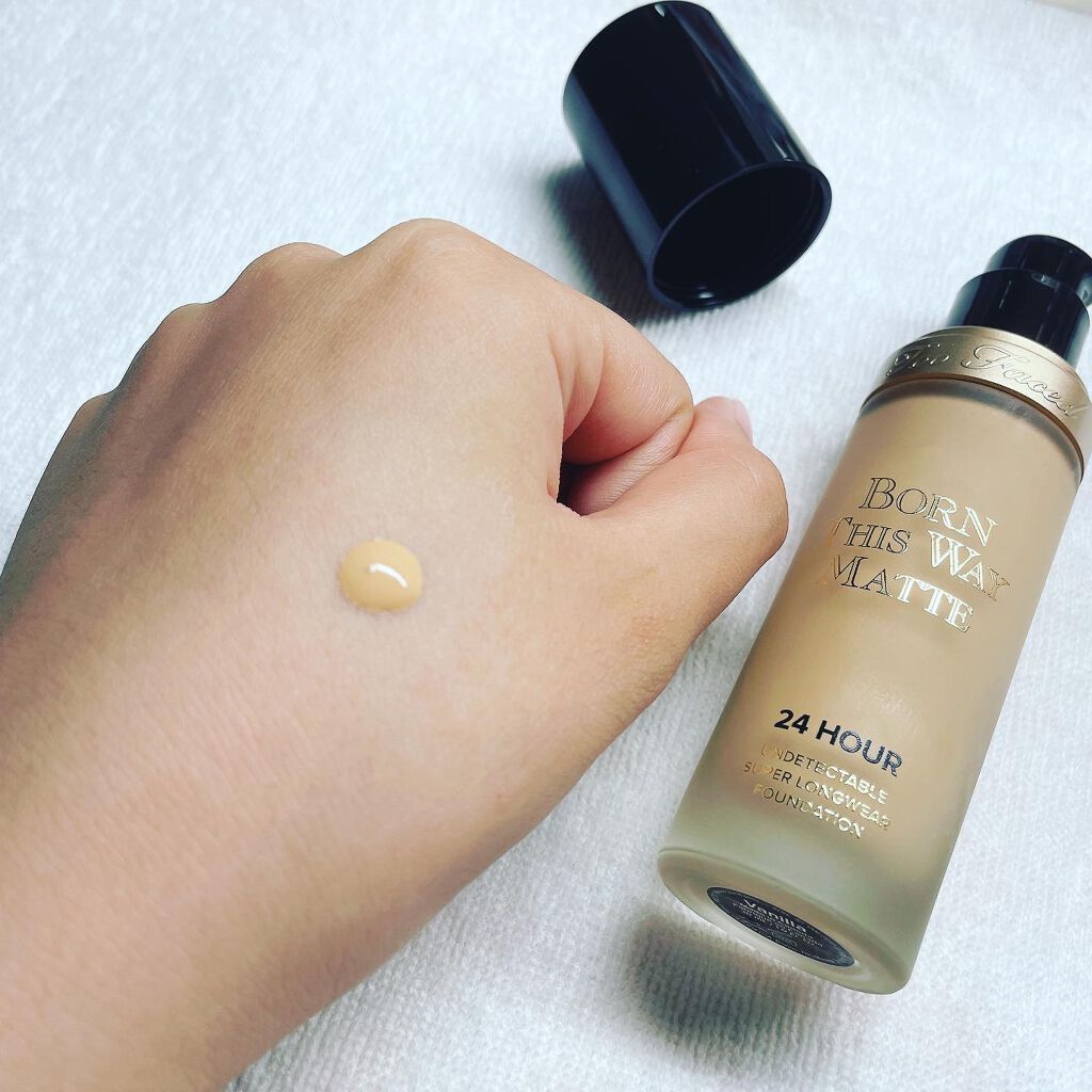伸びの良いゆるめなテクスチャーのリキッドファンデーション。つけ心地がとても軽やかで快適に過ごせます。品名にマットと入っていますが、ほどよくツヤ感も出てセミマットのような仕上がりです。カラーは12色展開!私が使ったのは黄味強めのバニラです。ピタっと密着するので時間が経っても崩れにくく、乾燥もあまり気にならなかったと思います。肌に馴染ませたあと一度ティッシュオフするとマスクにもつきにくくなってオススメです。#トゥーフェイスド#toofaced#コスメ#メイク#ファンデーション#リキッドファンデーション