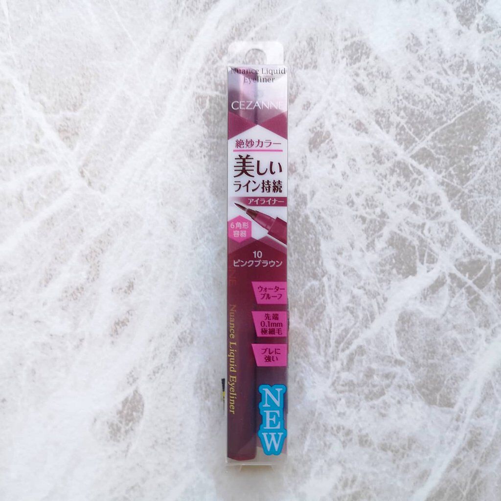 CEZANNEニュアンスリキッドアイライナー10ピンクブラウンピンクのアイラインかわいいよね!春らしい!グレージュに続いてピンクブラウン購入!かきやすい!そして、かわいい!!色落ちもとくになし!雨にぬれてもおちてないよ!びしょ濡れじゃないさ、...