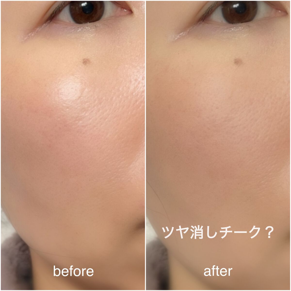 乗せすぎることがなく、メイク初心者さんでも使いやすいと思います👍 フェイスパウダーの代わりに使用でき、肌全体の質感が均等になります🫶 チーク自体にラメなどが入っていないので、ツヤ肌が好きな方が使用する時は注意です⚠️