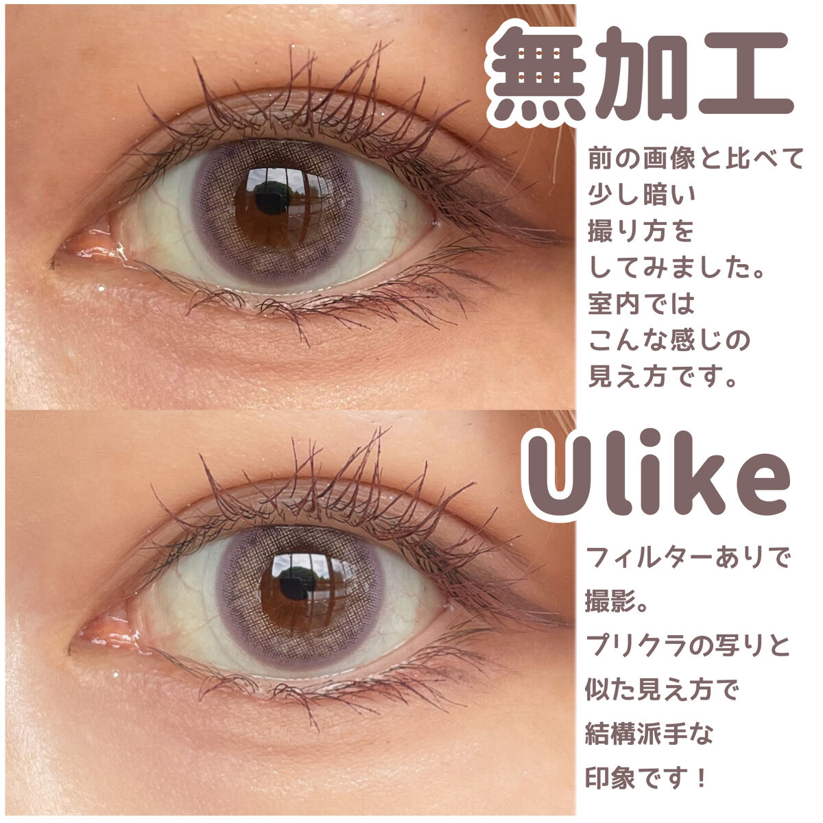 紫が強いピンクって感じです。ほんのり色付くのでナチュラルに儚い目になります。 UVカットなのも嬉しい〜 一日つけていてもゴロゴロしないので使いやすかったです。 10枚入・ワンデー DIA:14.0mm 着色直径:13.0mm BC:8.7mm 含水率:55%