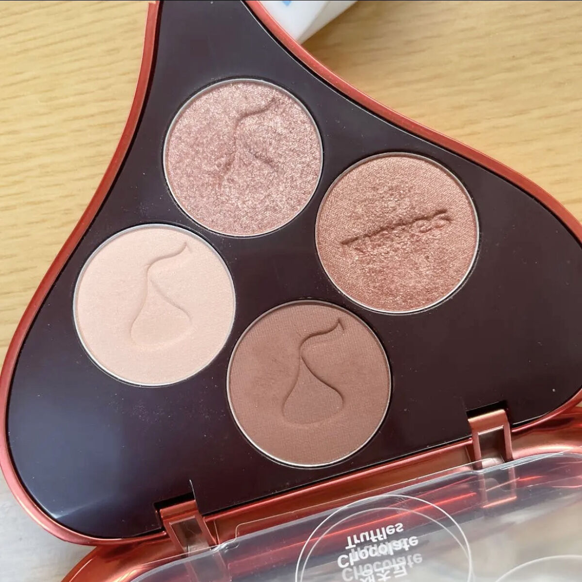 ほんのりチョコの香り付きのアイシャドウで パケもしっかりキスチョコ🍫 ピロピロ部分はシリコンなので意外と丈夫💪🏻★ ニュートラルなピンクブラウンで捨て色なし!! 大人女子にも使いやすさ満点のピンクブラウンが 今のこの時期にめっちゃ可愛い!と再燃してるアイシャドウの1つ₍ᵔ· ̫·ᵔ₎♡ 発売当初諦めた方も今の方が1500円以下くらいで 買えたりするのでやっぱり買おっかな〜ってタイミング的には いいかもです∩^ω^∩✨