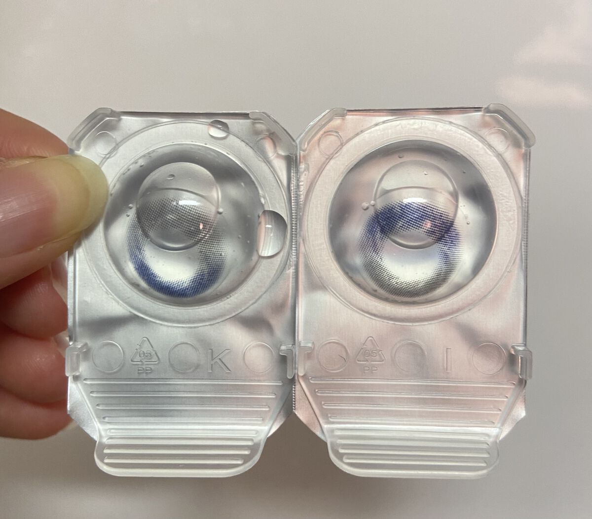 ・Base 深めのブルー×グレーのコントラスト ・point 円を描くように散りばめられたラメが ハイライトになる ・瞳に奥行きや立体感が出る ・そこまで派手じゃない ・目薬は2回差した ・かすみなども気にならない ・装着もしやすい