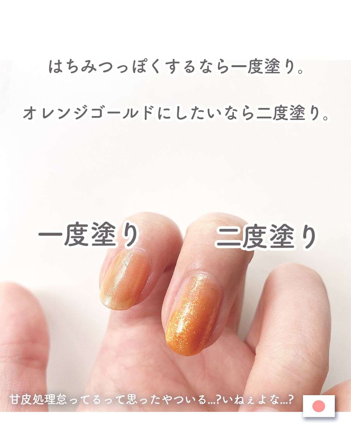 イエローの中にオレンジが混じり絶妙なカラーなんだよね✨ マリーゴールドみたいなカラーでホント可愛いよね❤️ 夏とか秋は使いたい色🧡 グラマーグリッターってラメも入ってるからさー🥰 チラチラしてるのも良いよね!
