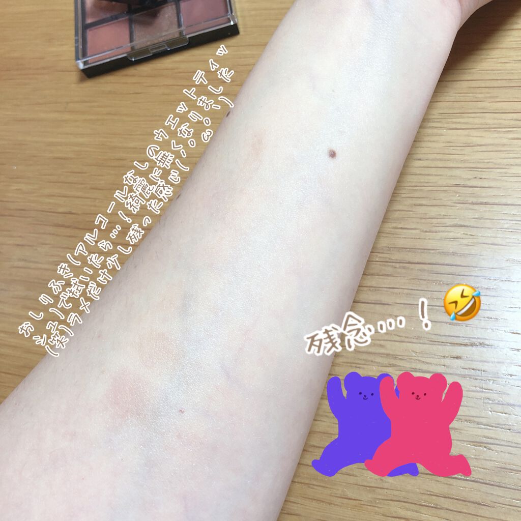 肌が黒いのに対してアイシャドウが明るすぎであまり馴染んでくれませんでした😳 少しつけただけで結構キラキラします🙌 やったことはないのですが、ほんの少しだけつけてハイライトの代わりにもなりそうだなと思いました☁️ 100円なので気になる人は挑戦する価値はあると思います🍒
