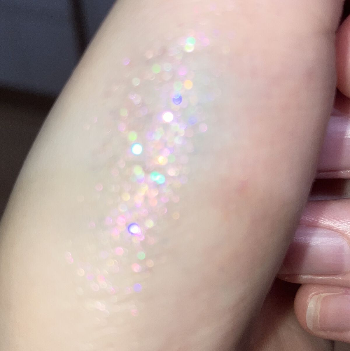 パケが大好きすぎて頭かかえる🤦♀️⚡️💓 粉質はかなり柔らかくてフワッフワ! グリッターはしっとりピタッと密着! 可愛いの代表のような白みピンクにココアブラウン! 右下のグリッターにはエメラルドグリーンの偏光ラメが入っていてアクセントに!