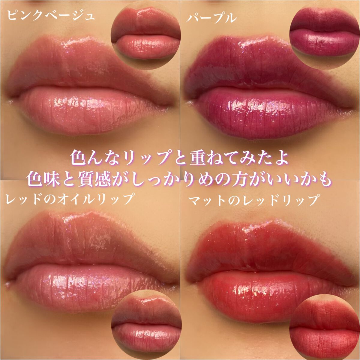 ノック式でスルスルと塗れて流行りのちゅるちゅるリップにしてくれます🫧✨ 色はほぼ出ないけど多色ラメたっぷりで塗る度ただただ幸せな気持ちになれる最高🥹💗 お直しの時に重ねるのも良さそう!!!