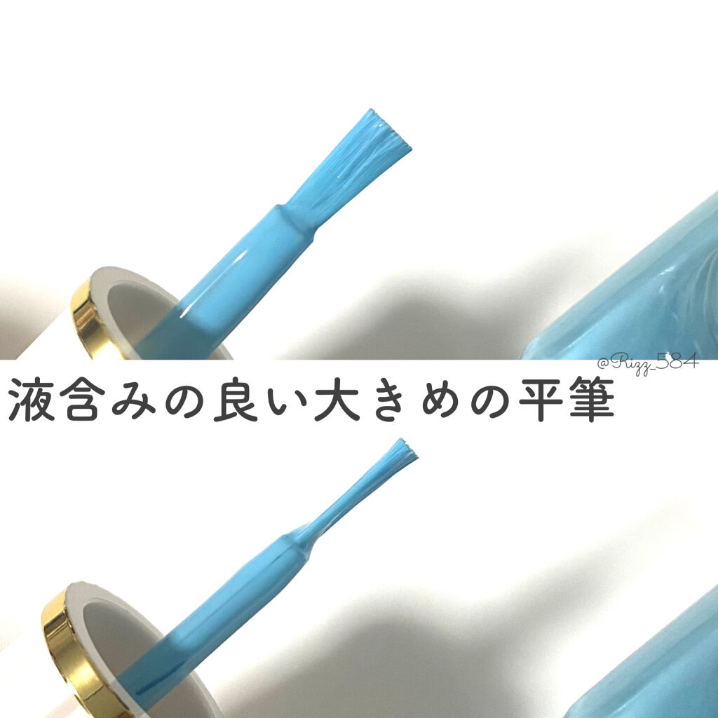 - 涼しげなアクアブルー ひと塗りで艶やかな爪に仕上げ、その美しさをキープ • やわらかい層をつくるフレキシブルフィットポリマー※を配合することで、厚みのある均一な化粧膜を形成。 非常に粒子の細かい色素を厳選して配合しているため、なめらかなのび広がりを妨げることなく、ムラを防ぎます。 また、毛足が短く、毛量を増やしたブラシが安定感のある快適な塗り心地で美しい仕上がりをサポート。 厚みのある均一な化粧膜が綺麗に光を反射し、艶やかに美しく爪を彩ります。 • フレキシブルフィットポリマー※を配合したことにより、乾いてからも化粧膜が柔軟性を保ちます。そのため、爪自体のしなりや 爪への衝撃などを吸収して剥がれを防ぎ、美しい仕上がりをキープします。