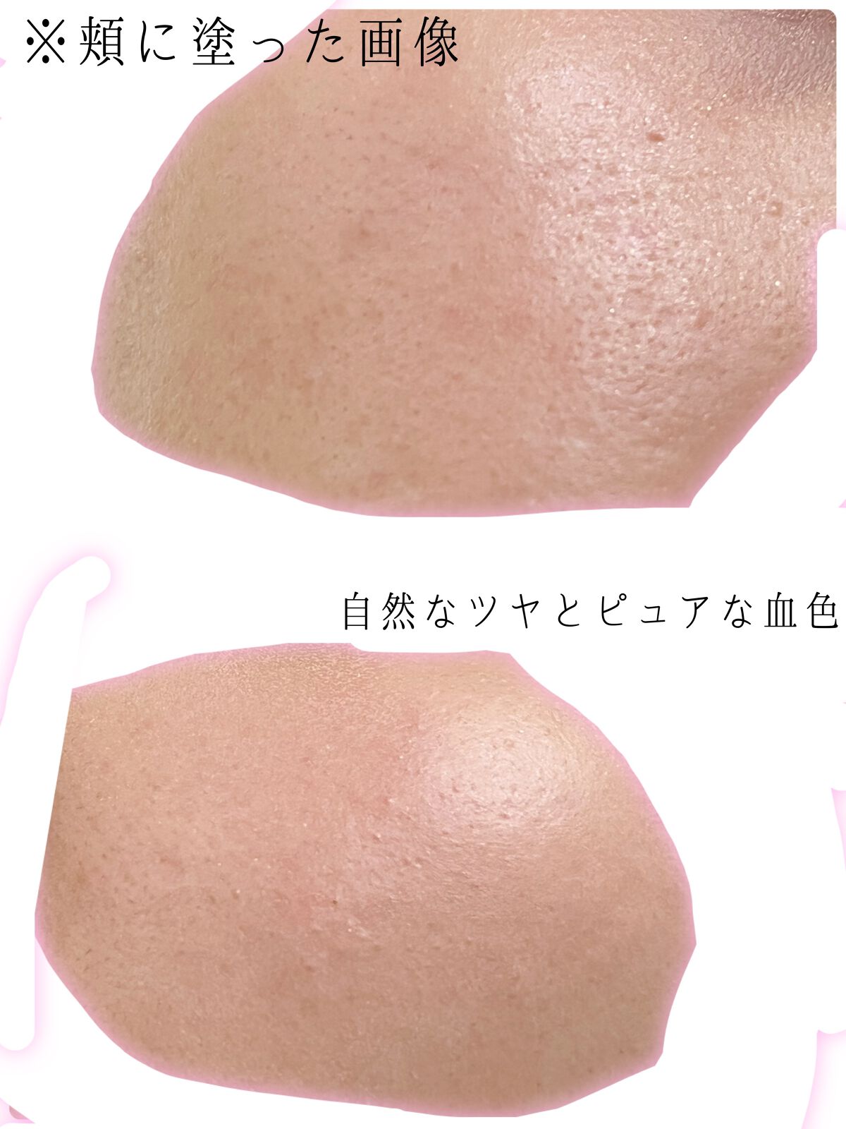 初め、いつものようにブラシに取って頬に付けたら発色が良過ぎて濃くなってしまってビックリ‼️ ポンポンと置くように粉をブラシに取り、色を乗せたい部分からスーッとブラシを動かすとフワッと柔らかい発色になります💕 細かい粒子に細かいパールが入っていて上品に輝きます✨ 透け感もあるので、肌馴染みが良く自然な血色感も出してくれます☺️