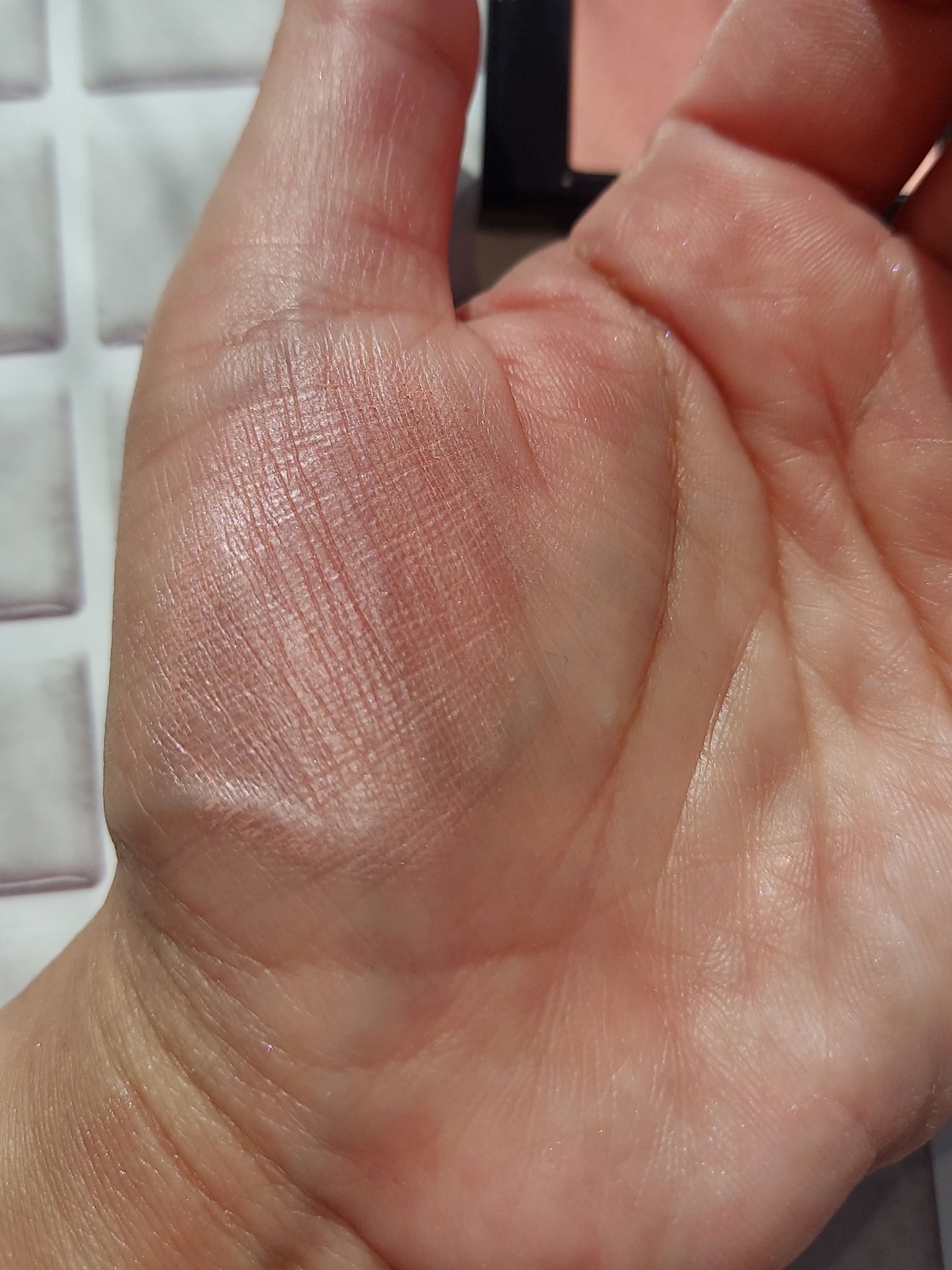 色味は可愛いんだけど、パール感が強すぎて(白パール)肌に馴染まなかった。 重ねると色よりもパールのてりてり感が強すぎて…、もうちょっと見たままの色が乗っかればよかったなぁ。 粉質とかツヤ感はすごく綺麗です。