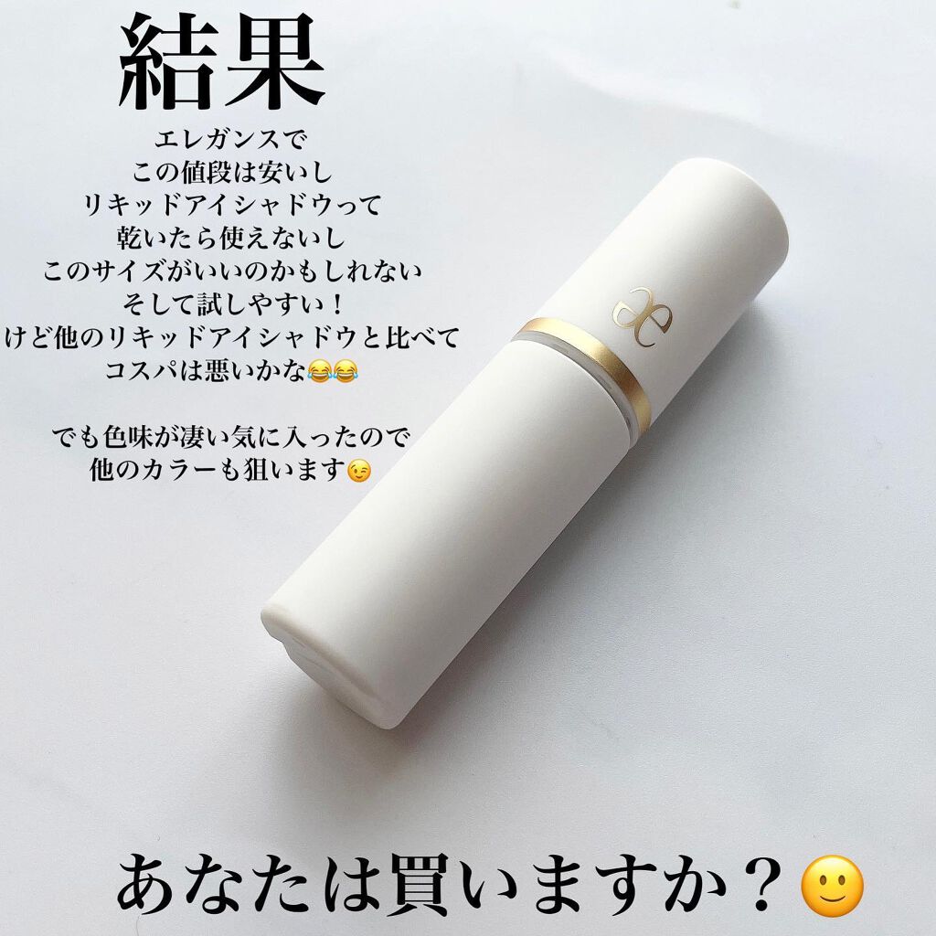 .eleganceアイカラーミジェットYE021,980円(税込)涙袋のために作られたんじゃないかって言えるリキッドアイシャドウ(他のカラーは別)細かいラメとツヤのあるゴールド✨その時使ったアイシャドウに合わせて黒目上で使ったやつをそのまま涙...