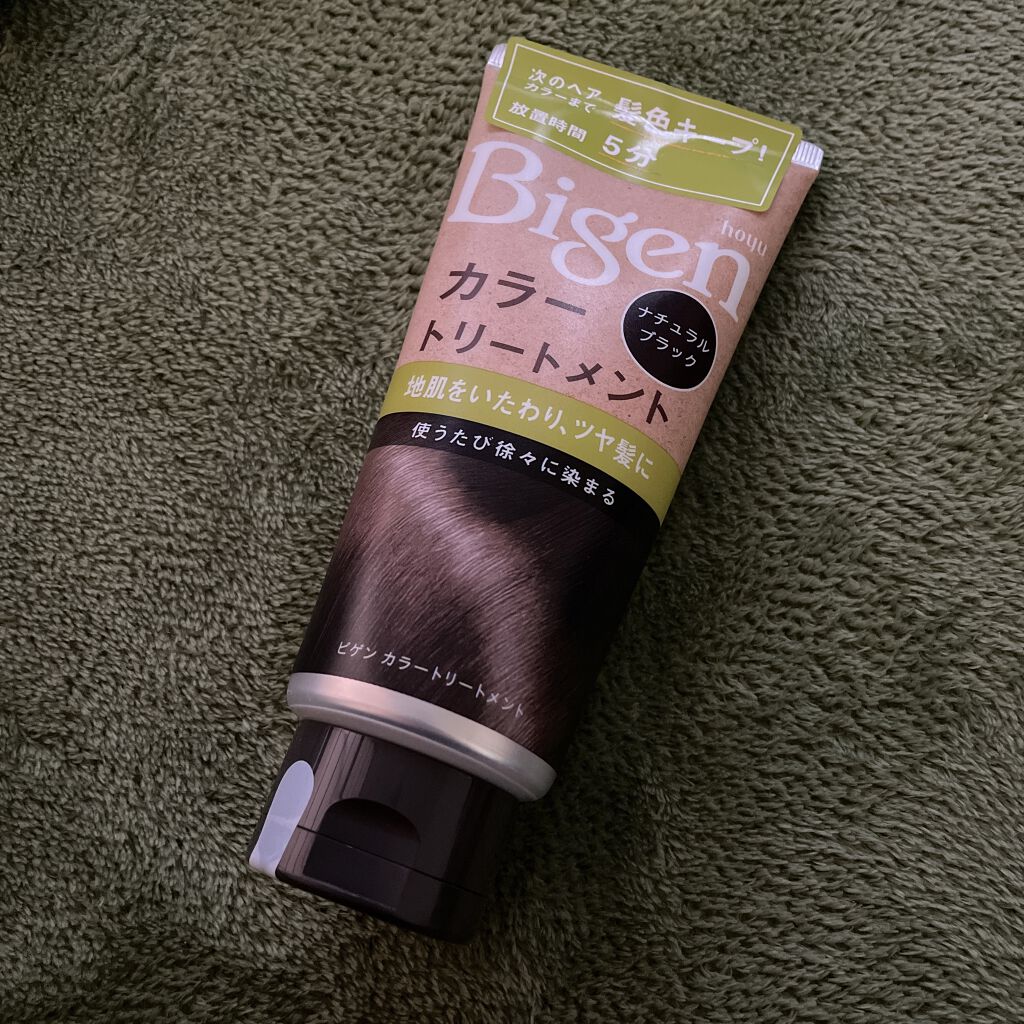 ビゲン カラートリートメント (ナチュラルブラック)ドラックストアで800円ほどで購入しました。※カラートリートメントの使用方法を完全に無視して自己流でやりました。☆髪の状態ブリーチなしセルフカラー3回ほどセミロング☆使用方法(一度で染めたくて自己流です。)セミロングの髪に1本一度で全て使います全体にムラなくつけラップを巻く4時間放置←重要です※注意点手や服に着くと大変なので手袋とブーケ必須です。☆4時間放置後丁寧に何度も洗い流す(洗っても洗っても黒いトリートメントがでてきます。)これで黒髪の完成です!!❤️髪の毛をこれ以上痛めたくなかったのでカラートリートメントに変更しました。この方法で染めると3週間から1ヶ月ほど色持ちします♪