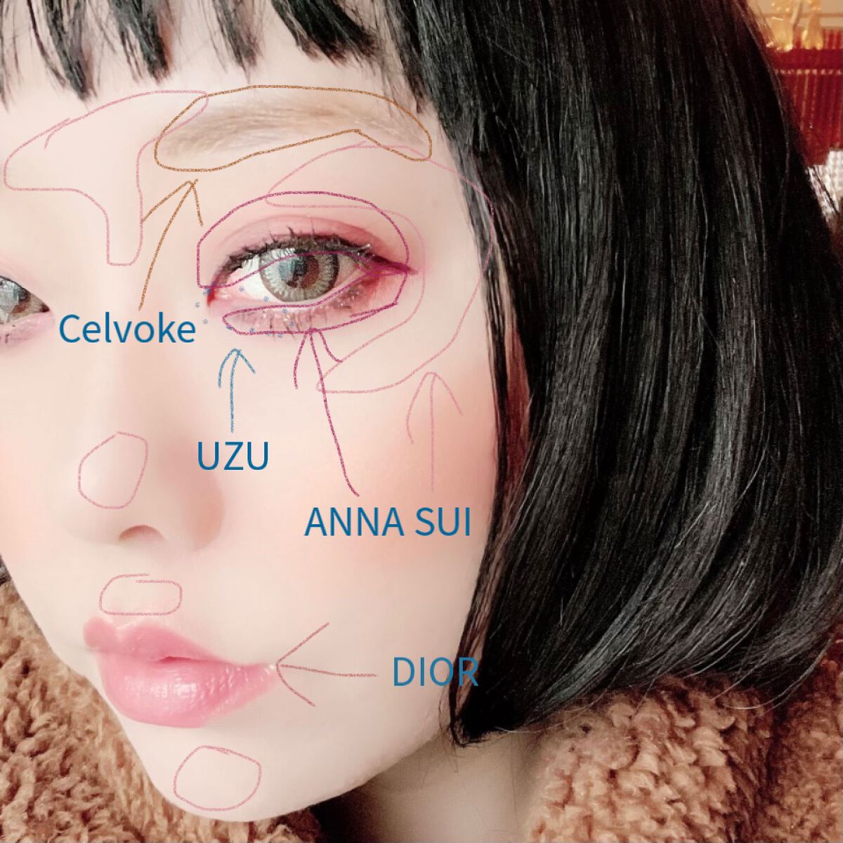 CelvokeメインのメイクですがSUQQUの白茶の抜け感が合う(*´˘`*)♥ インディケイト アイブロウパウダーのクリムゾンブラウンがとても優秀でメイクの色味を統一させてくれます✩.*˚ しっかりメイクしてるけど無理のない色遊びが楽しいです♪♪