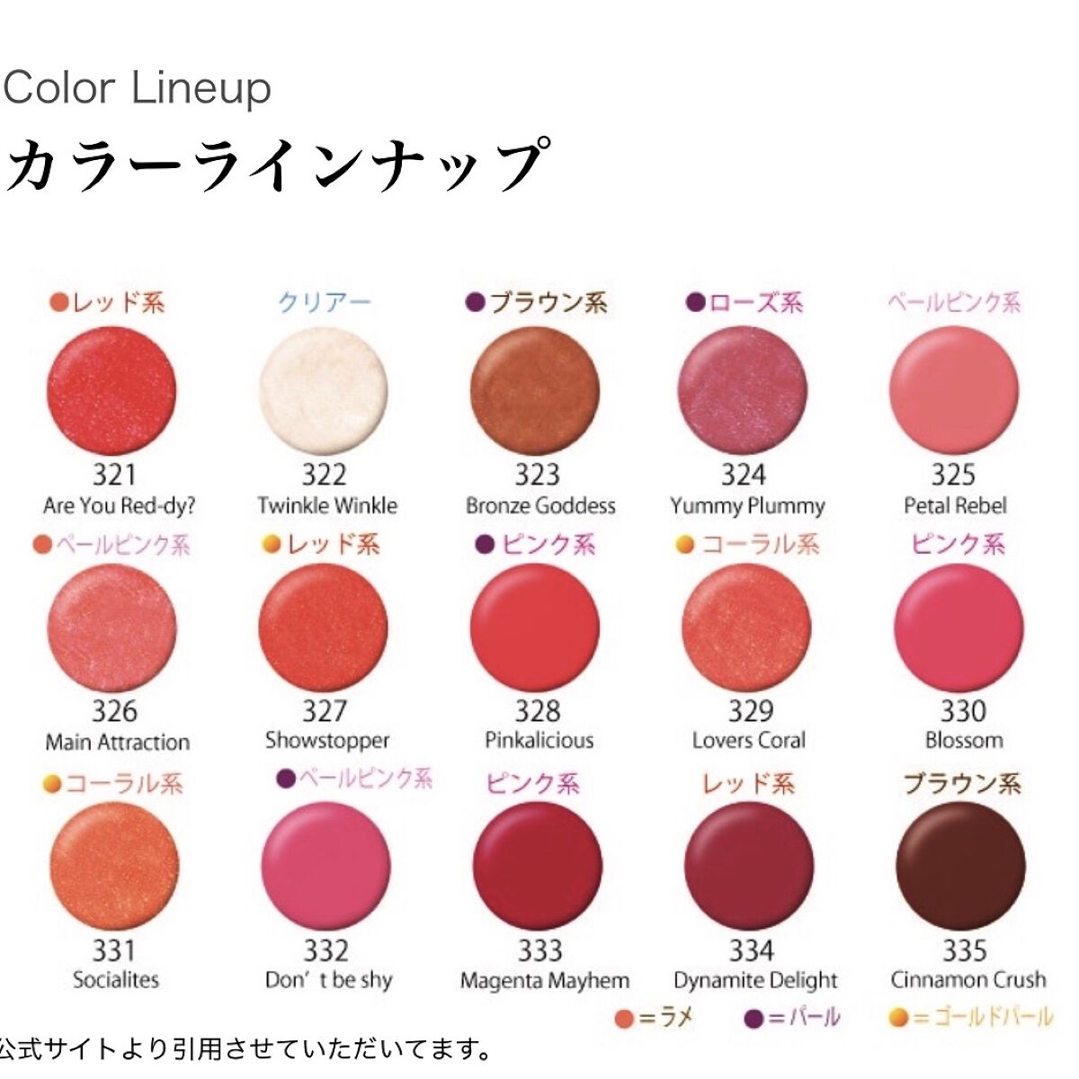 LusciousLipsクリアー 322TwinkleWinkleコーラル系 331Socialites濃厚なグロスです。朝に使えばお昼まで、さっき塗ったかのように全然乾燥していません。1回飲食や歯磨きをしても、他グロス程度の保湿がされたま...