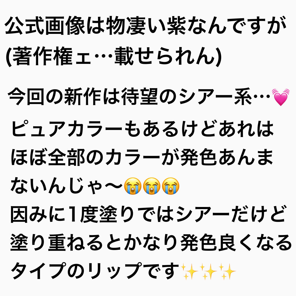 | 口紅・グロス・リップライナーランキング第26位 | とてもシアーな発色なので、超ナチュラルにも、 グラデーションも、がっつり色を出すのも可愛いです | 詳細を見る |