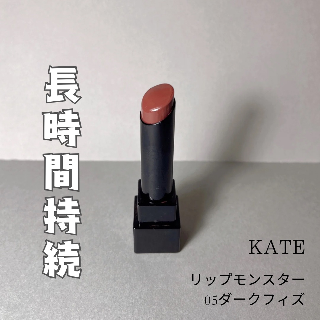 〇リップKATEリップモンスター05会社へのリップ用に買いました!落ち着いてる色で、赤リップが似合わない私は、こういう赤ぽいブラウン系のリップをついつい買ってしまいます汗色持ちもわたし的にはもつので、塗り直すのを忘れてしまいがちの会社へ行くと...