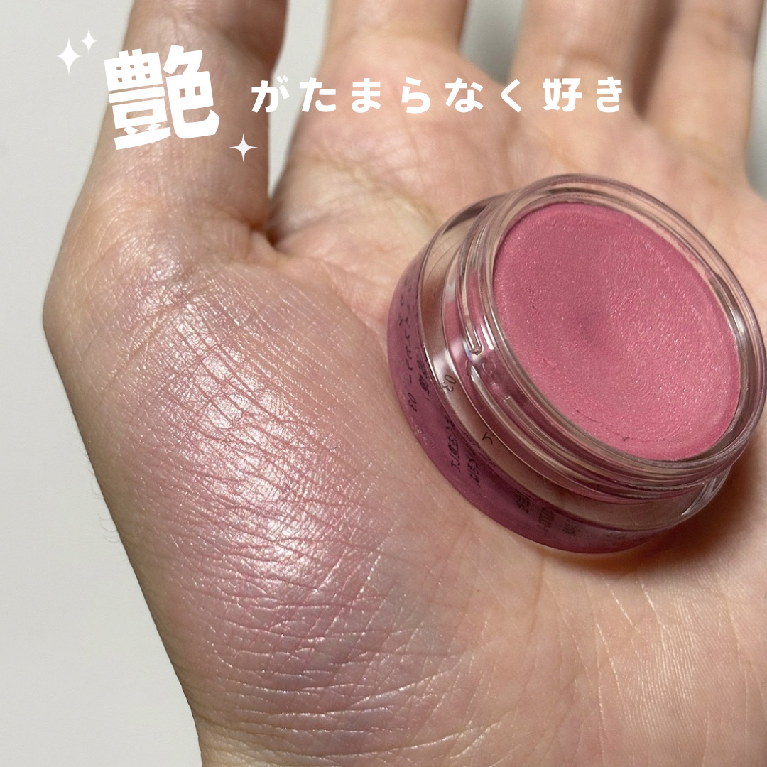 可愛い色のチーク欲しいってなった時に好きな美容系のインフルエンサーさんがおすすめしてて、何て可愛い色なんだろう!絶対欲しい好みの色ってなりました✨✨✨ 本当に可愛いベビーピンクでキュートな赤ちゃんのふんわりした多幸感溢れるほっぺになれます(個人の感想) 濃いめにつけて超キュートに仕上げるも良し、薄めにつけてほんわかふんわり控えめ可愛い女子に仕上げるのも良しです。 そして、量は一生なくならないんじゃないかレベルで入ってますし程よいテクスチャーで減りも早くないのでコスパは最強だと思います。 色持ちも良いと思います。塗り直さなくても多少薄くなったりしますが1日血色あるほっぺで過ごせます。 あと、パッケージがとってもコンパクトなので持ち歩きにも便利なので途中のお直しにも持ち歩きやすいです。 私はチークとしてしか使ってませんが、アイカラーにもリップカラーにも使えるらしいのでポーチに1つあると最強なのではないかと思います。
