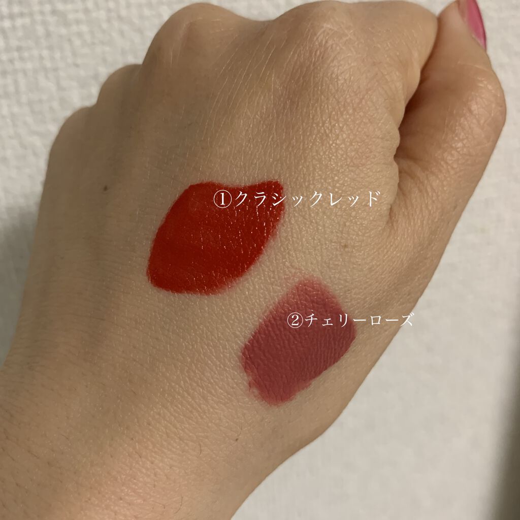 塗るとゴリっゴリな高発色🫣 とにかく落ちにくくて、 落ちにくいのが利点かと思いきや、落ちにくすぎるーー😭 ポイントリムーバーを使っても中々落ちない💦 落とす時に、摩擦や乾燥で唇荒れないか心配になるほど🥹 香りが強くて、バニラ?🍨キャラメル?みたいな甘い香り🤤 持続も凄くて、暫くは香り取れません😢 塗ったあとは乾燥しやすいなという点もあり、 個人的に色々気になる点がありました💦 ベタ塗りすると、濃い印象になってしまったので ぽんぽん塗りでも試してみたんですが、 濃いなぁという印象は変わらず😭 扱いが難しかったので、 メイク上級者向けかなぁと感じました😶💭